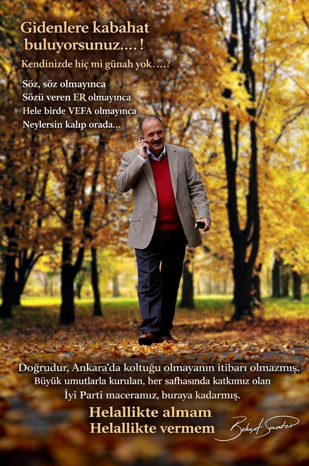 Fethiye’de 1999 yılında MHP’den Fethiye Belediye Başkanı olarak seçilen ve 2019 yılına kadar belediye başkanlığı yapan Behçet Saatcı, 2019 yılında katıldığı İYİ Parti’den son yerel seçimlerde Fethiye Belediye Başkan aday adayı da olmuştu. Evli iki çocuk babası olan 69 yaşındaki geçmiş dönem Fethiye Belediye Başkanı Behçet Saatcı, son yaptığı sosyal medya paylaşımında İYİ Parti macerasını noktaladığını ifade etti. Saatcı, sosyal medya paylaşımında, ‘’Gidenlere kabahat buluyorsunuz, Kendinizde hiç mi günah yok, Sözü veren er olmayınca, hele bir de vefa olmayınca, neylersin kalıp orada. Doğrudur, Ankara’da koltuğu olmayanın itibarı olmazmış. Büyük umutlarla kurulan her safhasında katkımız olan İYİ Parti maceramız buraya kadarmış. Helallik de almam, helallik de vermem’’ ifadelerini kullandı.