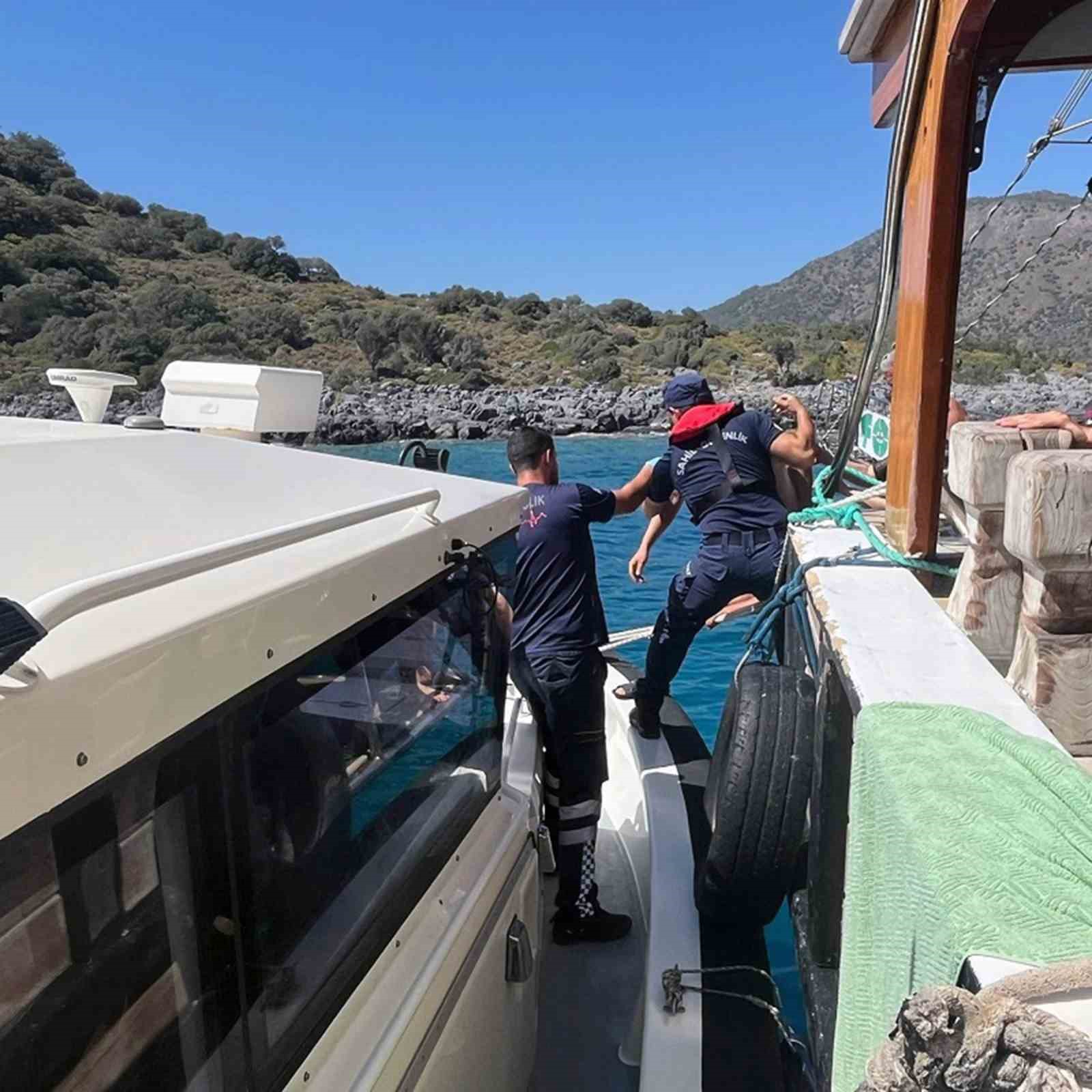 Fethiye’den gezi amaçlı tekneye binen vatandaşın yaralanması üzerine yardım çağrısı yapıldı. Sahil Güvenlik ekipleri yaralanan vatandaşı bota alarak kıyıda bekleyen 112 ambulans ekiplerine teslim edildi.