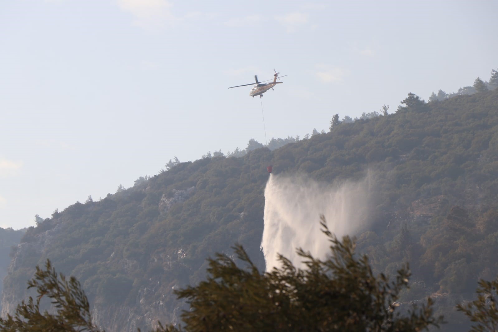 Gökova Körfezi’nde makilik ve ormanlık alanda çıkan ve geniş bir alana yayılan yangını söndürme çalışmaları sürüyor. Gün boyu devam eden çalışmalarda 45 arazöz, 14 su tankeri, 7 dozer ve 313 orman personeli karadan, 16 helikopter ve 8 uçak havadan katıldı. Jandarma ve emniyet ekiplerinin yanında Muğla Büyükşehir Belediyesi İtfaiye Daire Başkanlığı ekipleri, gönüllü vatandaşlar ve köylüler de destek verdi. Arazinin çok sarp ve engebeli olması alevlerle mücadeleyi güçleştirirken, ekiplerin yangını kontrol altına çalışmaları devam ediyor.