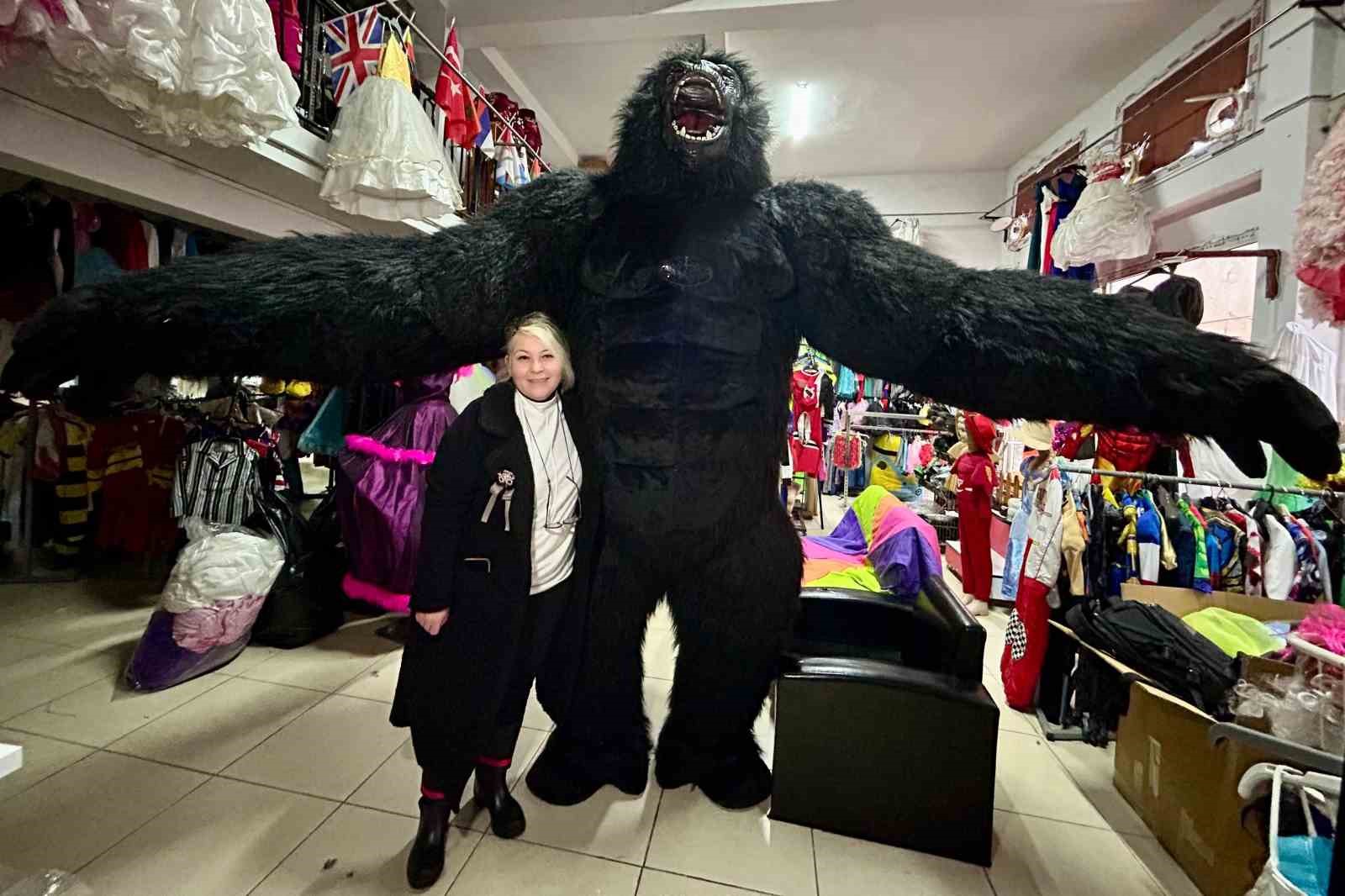 Goril kostümüyle tarihi çarşıda dolaştı, sosyal medyada gündem oldu