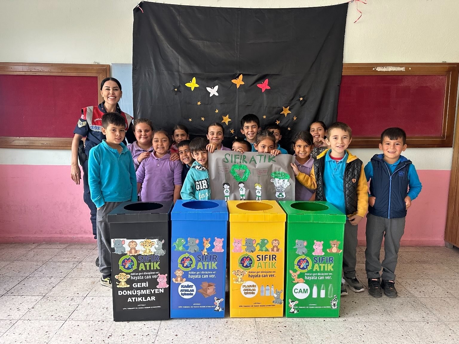 Aydın’ın Kuyucak ilçesinde jandarma ekipleri ilkokul öğrencilerini geri dönüşüm, katı atık yönetimi, doğa ve hayvan sevgisi konularında bilgilendirdi.