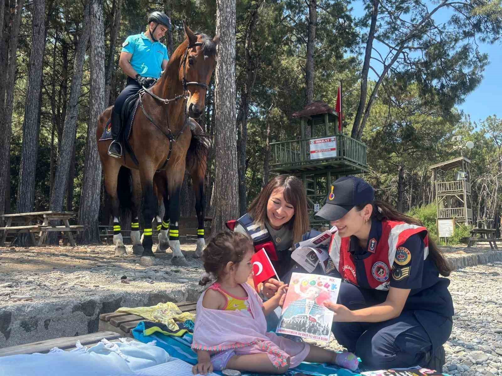 Aydın İl Jandarma Komutanlığı ekipleri Kuşadası Dilek Yarımadası Milli Parkı’nda vatandaşlara başta orman yangınları olmak üzere çeşitli konularda bilgilendirmede bulundu.