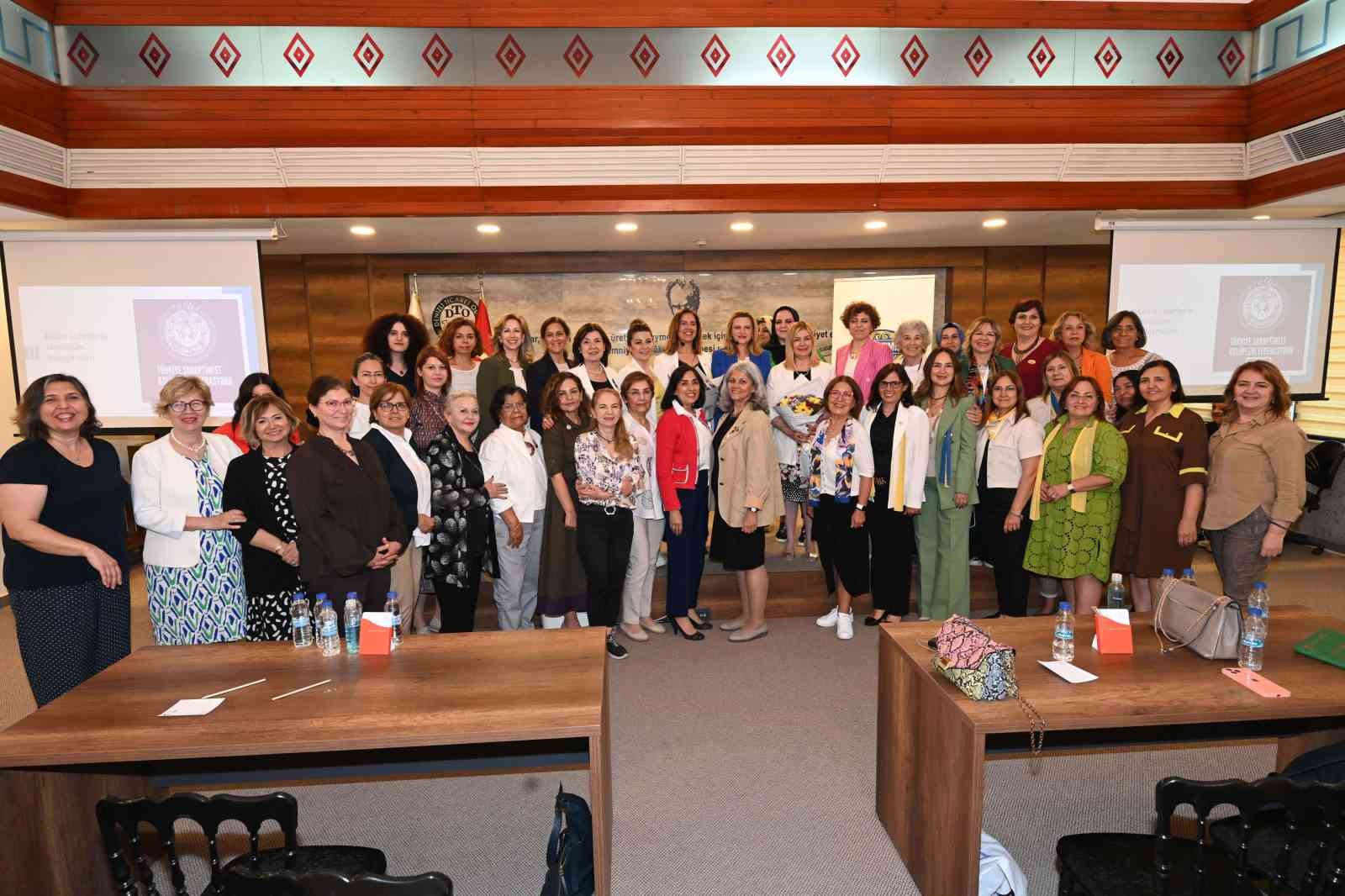 Dünyada ve Türkiye’deki toplumsal cinsiyet eşitsizliğine dikkat çeken SKF Başkanı Betül Elmasoğlu, “Dünya Ekonomik Forumu’nun Küresel Toplumsal Cinsiyet Uçurumu Raporu’na göre Türkiye ne yazık ki 146 ülke arasında 129’uncu. Bunun da sebebi kadınların istihdama, siyasete ve karar alma mekanizmalarına katılımlarının düşük kalması. Tüm bu yaşananlarsa maalesef ata erkil düzenin sonuçlarıdır. Bizlerin zihinlerimizi değiştirmeye, dönüştürmeye, kadınların öncelikli ve önde olduğu bir yaşama ihtiyacımız var. Ülkelerin sürdürülebilir kalkınması, kadınların özgürce var olabilmesi ile mümkündür. Bu tablonun bize yakışmadığı çok açıktır; çıkış yolumuzsa toplumsal cinsiyet kalıplarının aşılmasından geçmektedir. Çağdaş, demokratik ve müreffeh bir ülke için kadın erkek yan yana yürümeliyiz, birlikte mücadele etmeliyiz. Türkiye Soroptimist Kulüpleri Federasyonu olarak iş hayatında öncü kadınlarla birlikte olmak, onların başarı hikayelerini dinlemek, kızlarımıza örnek olalım istedik. Bugün de bu kapsamda burada ikinci toplantımızı yapmanın mutluluğu ve gururunu yaşıyoruz. Denizli’de bize bu imkânı sundukları için Ticaret Odası Yönetim Kurulu Başkanımız Sayın Uğur Erdoğan başta olmak üzere Başkan Yardımcımız Sayın Melek Sözkesen Kartay ile yönetim kurulu üyelerine çok teşekkür ediyoruz” dedi.