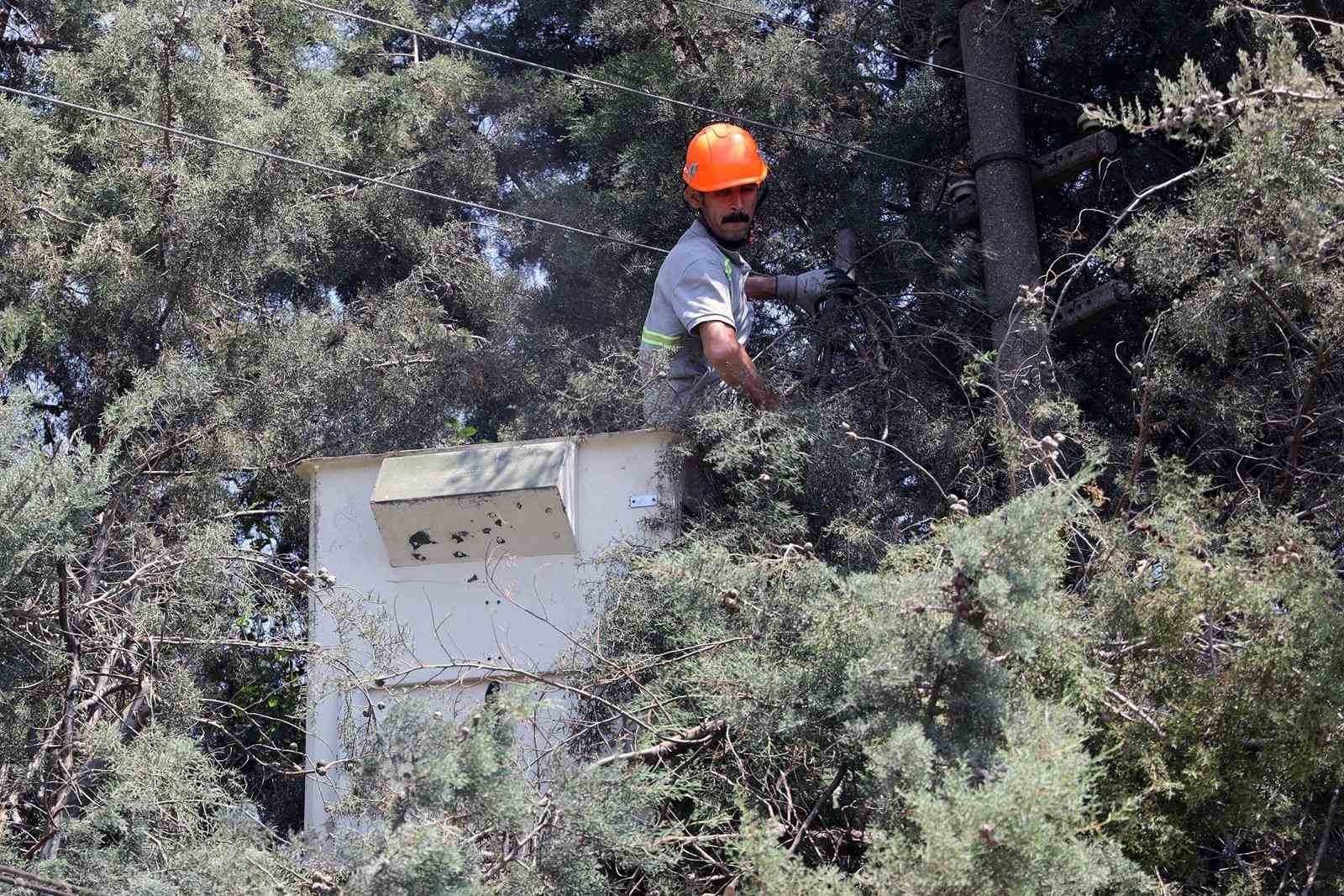 Menteşe Belediyesi Karabağlar Yaylası’nda elektrik tellerine temas eden ağaç dallarını buduyor. Yangına sebebiyet verebilecek ağaçların dallarını budama işi Menteşe Belediyesi ve elektrik dağıtım şirketinin ortak çalışması ile yapılıyor.