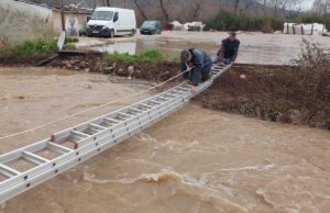 Muğla’nın Seydikemer ilçesinde şiddetli yağış sonrası Eşen Çayı’nın taşmasıyla tarım arazileri ve hayvan barınağı sular altında kalırken, alabalık üretim tesislerinde mahsur kalan 2 kişi kurtarıldı.Seydikemer’de aralıksız süren sağanak yağış hayatı olumsuz etkiledi. Eşen Çayı’nda bazı noktalarda yaşanan taşkın nedeniyle çevredeki…