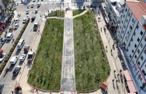 Yıkılan işhanı alanında çevre düzenlemesi tamamlandı