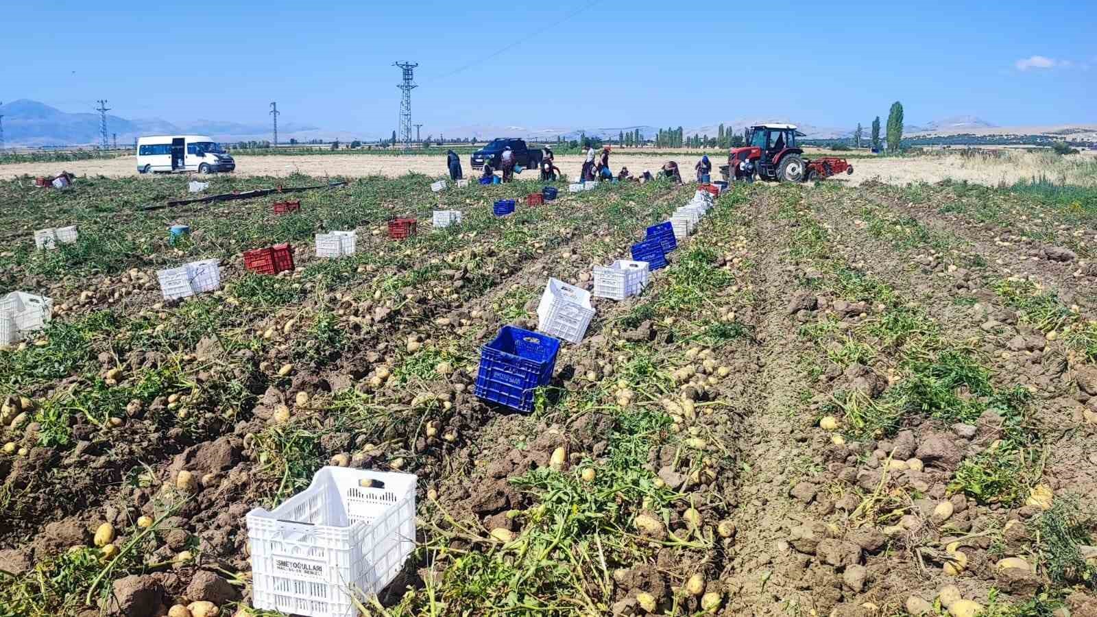 AFYONKARAHİSAR’IN DİNAR İLÇESİNDE 30 BİN DEKAR ALANDA EKİMİ YAPILAN MARABEL CİNSİ PATATESTE HASAT BAŞLADI.