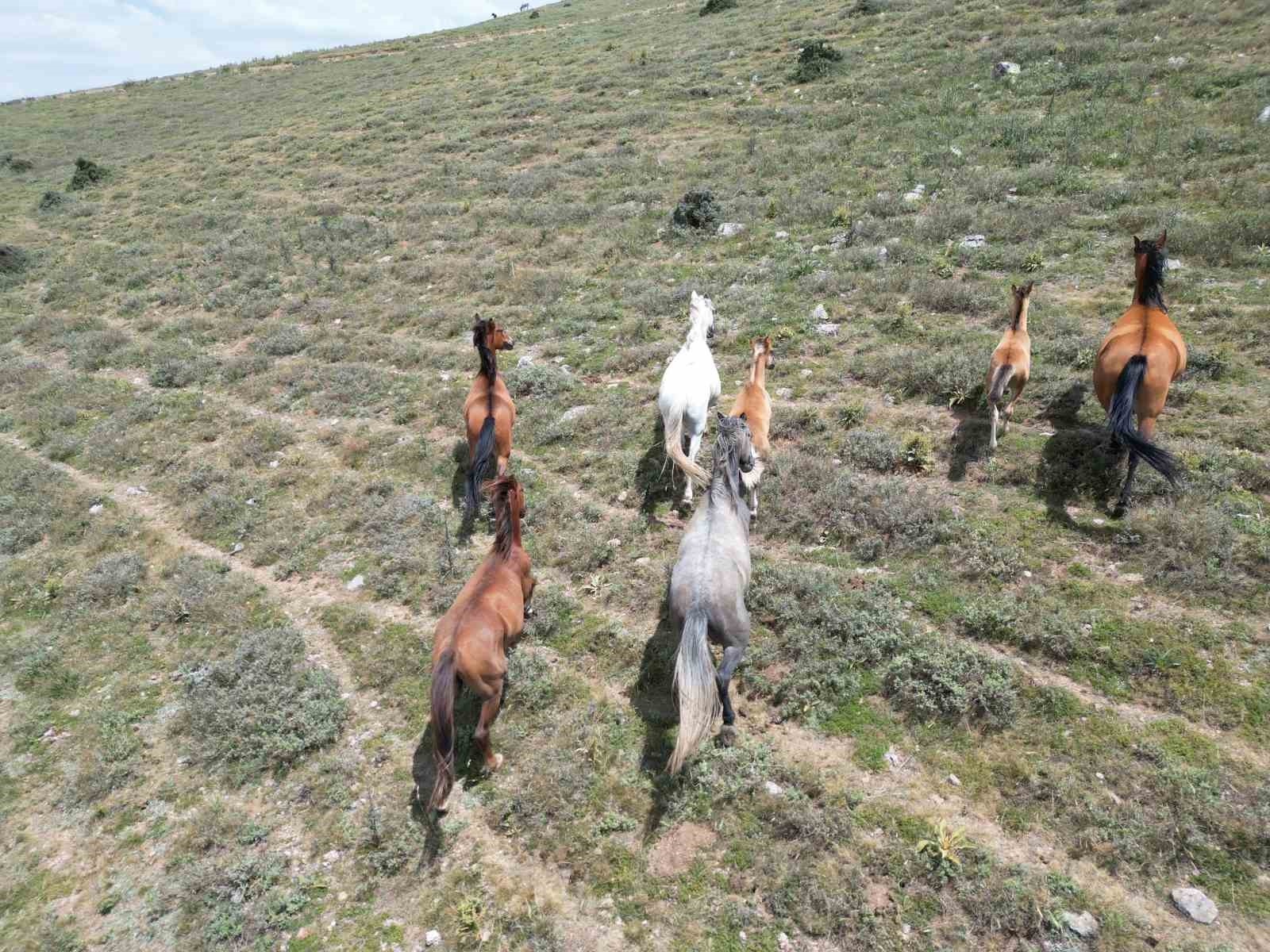 (ÖZEL) Sıcak yaz günlerinde yiyecek arayan yılkı atları havadan görüntülendi