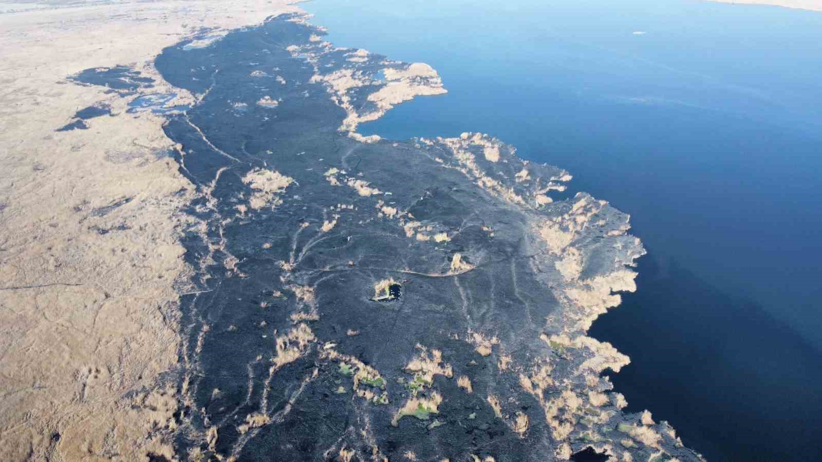 Eber Gölü’deki yangında zarar gören 40 futbol sahası büyüklüğündeki alan havadan...