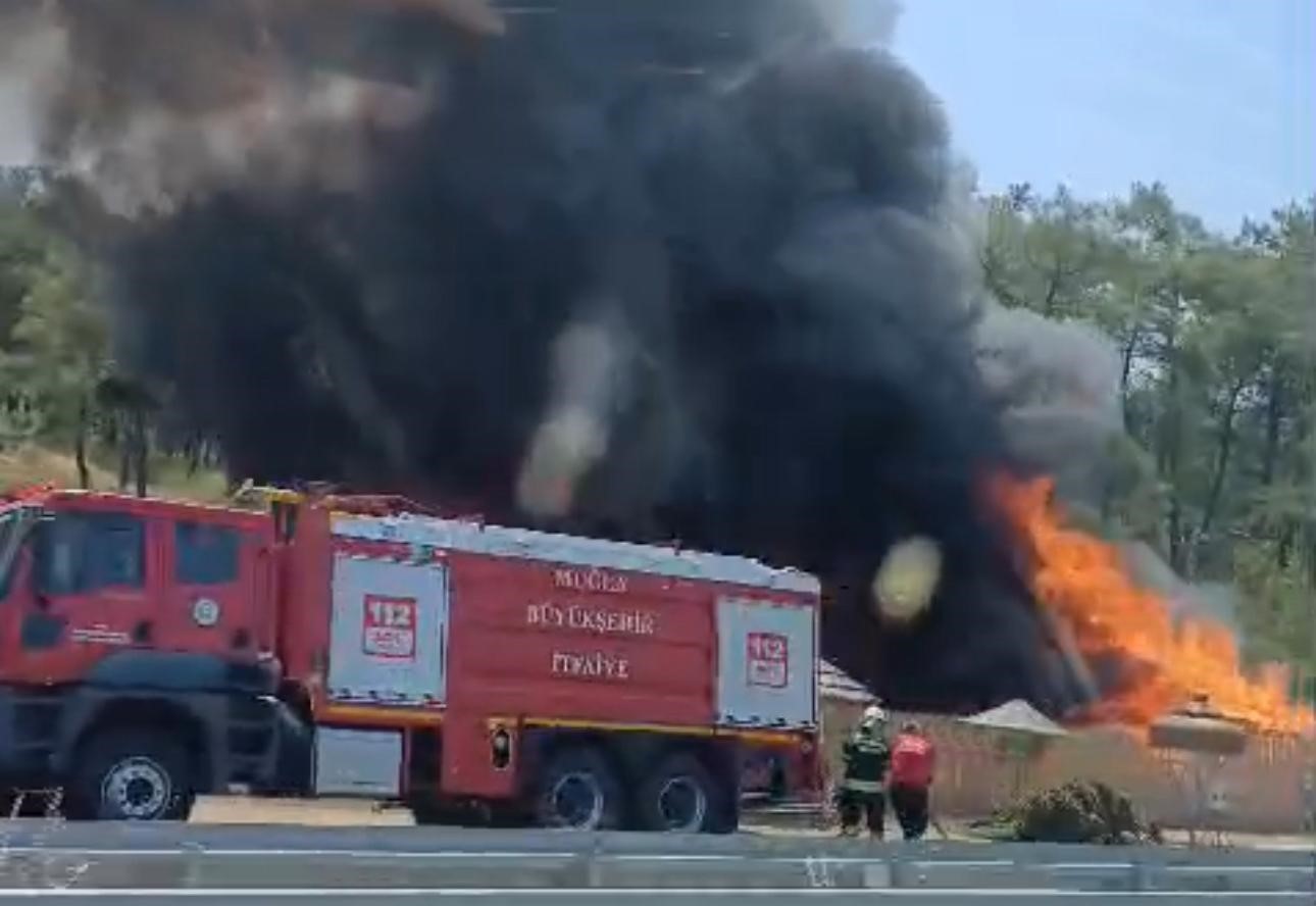MUĞLA'NIN ORTACA İLÇESİNDE HASIR ÜRÜNLERİN SATIŞININ YAPILDIĞI İŞ YERİ ALEVLERE TESLİM OLURKEN ALEVLER ORMANLIK ALANA SIÇRADI. EKİPLERİN YOĞUN ÇABALARI SONUCU YANGIN KONTROL ALTINA ALINDI.