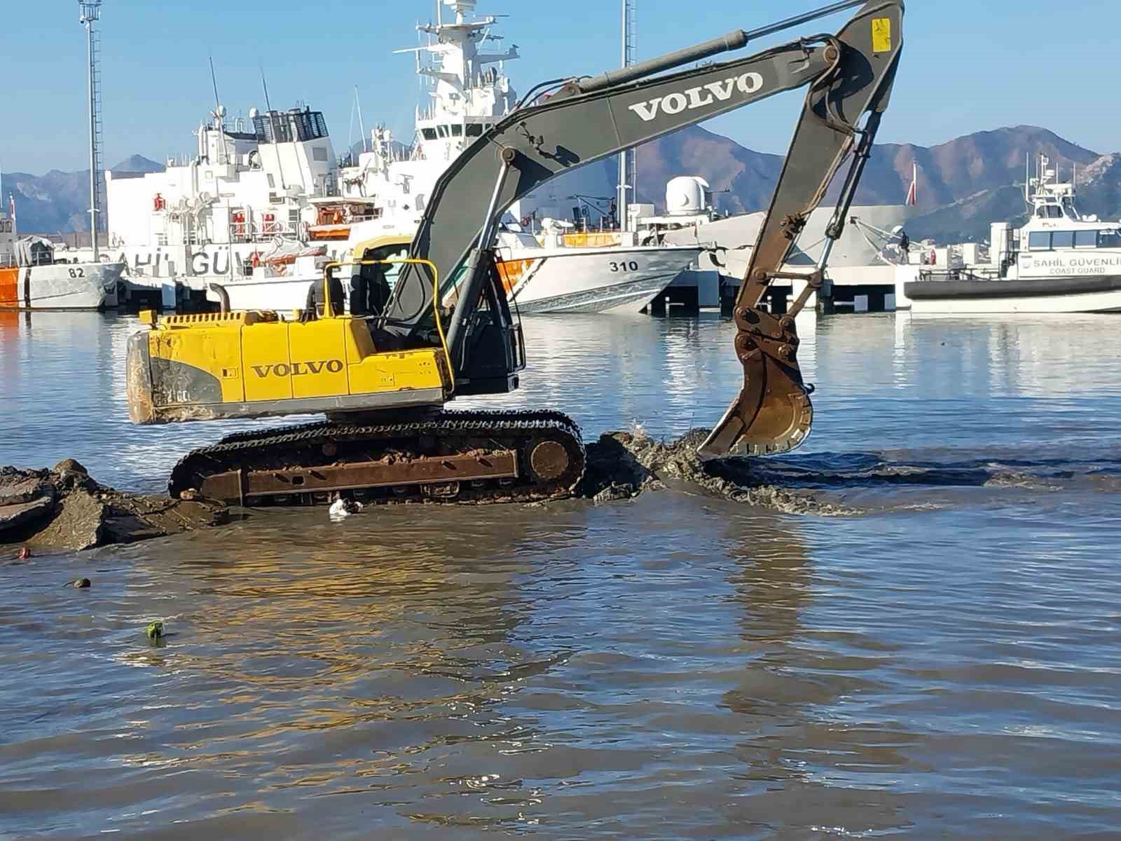 MARMARİS BELEDİYESİ, BURUNUCU MACERA PARKI’NDAKİ DENİZ İÇİNDEKİ ESKİ DOLGU ALANINDAN KALMA BETON BLOKLARA VE KESKİN KAYALARI KEPÇEYLE TEMİZLEDİ.