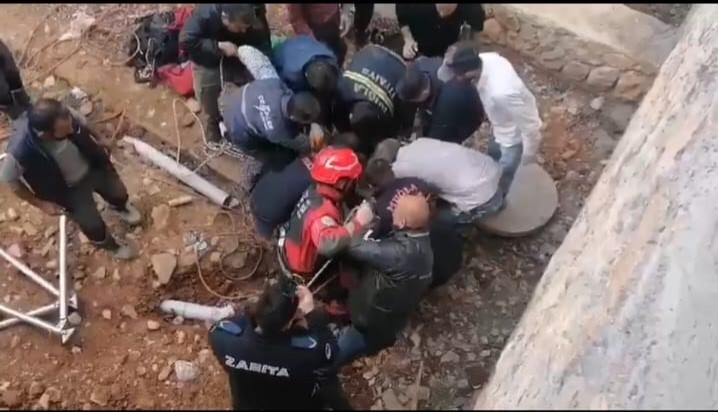 Kuyuya Düşen İşçi̇yi̇ İtfai̇ye Kurtardı