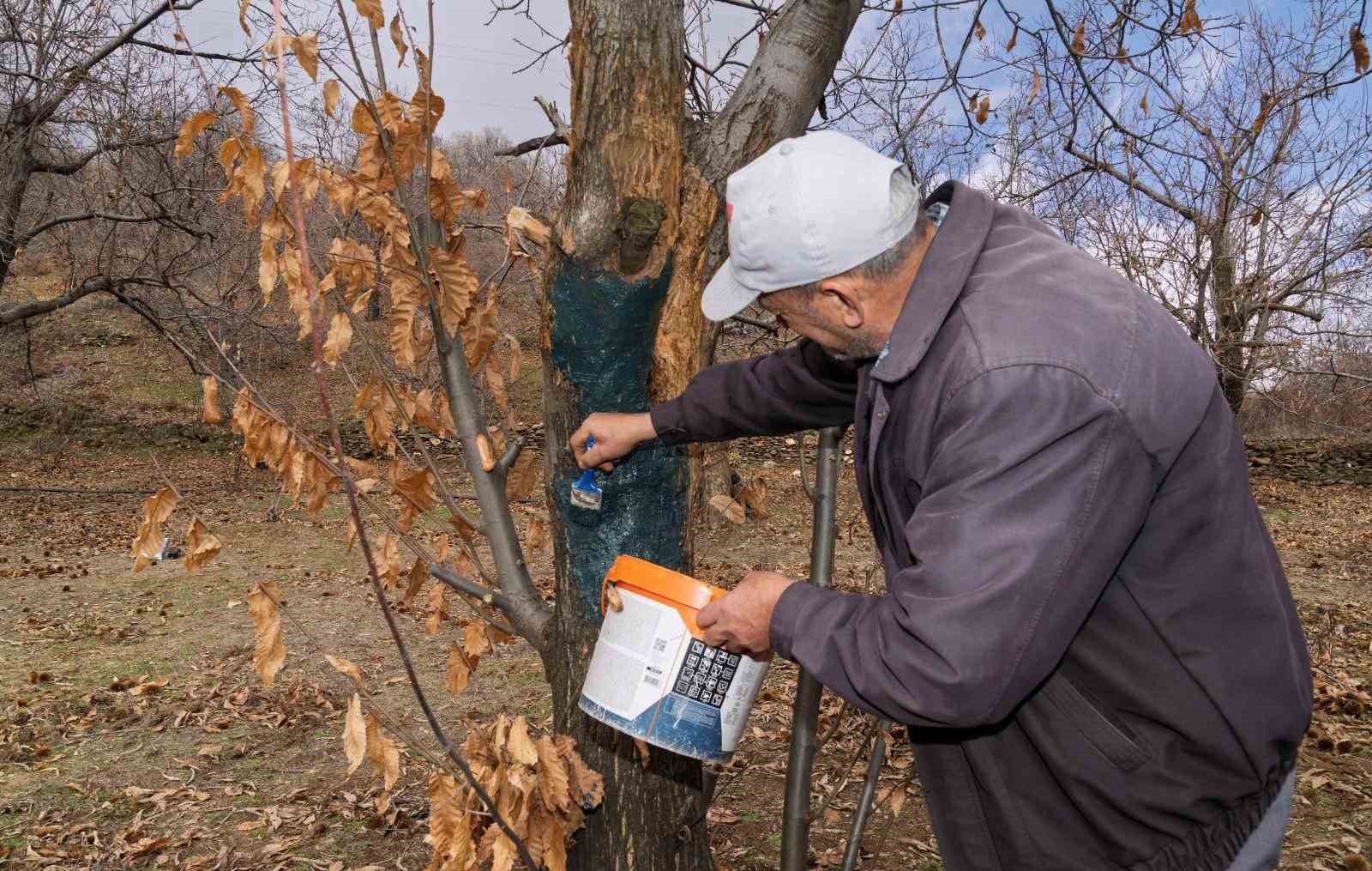 KIRSALDA ÜRETİCİNİN AYAKTA KALMASI İÇİN ÇALIŞMALARINI SÜRDÜREN İZMİR BÜYÜKŞEHİR BELEDİYESİ, KÜÇÜK MENDERES’TE ÜRETİMİ OLUMSUZ ETKİLEYEN KESTANE KANSERİ İLE MÜCADELEYİ YOĞUNLAŞTIRDI. 30 MAHALLEDE TOPLAM BİN 634 KESTANE ÜRETİCİSİNE HASTALIKLA MÜCADELE İÇİN ARDIÇ KATRANI, GÖZTAŞI VE SODYUM HİPOKLORİT DESTEĞİ SAĞLAYAN BÜYÜKŞEHİR BELEDİYESİ, DOĞRU MÜCADELE İÇİN ÜRETİCİYE UYGULAMALI EĞİTİM DE VERDİ.