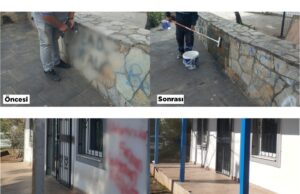 Kent estetiğini bozan yazılar ve resimler belediye ekiplerince temizleniyor