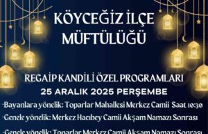 Muğla’nın Köyceğiz ilçesinde Ramazan-ı Şerif’in müjdecisi Regaip Kandili çeşitli programlarla idrak edilecek.Köyceğiz Müftülüğü tarafından 25 Aralık 2025 Perşembe günü mübarek üç ayların ilk kandili olan Regaib Kandili nedeniyle özel programlar düzenlenecek. Regaib Kandili dolayısıyla Köyceğiz İlçe Müftülüğü tarafından Perşembe günü…