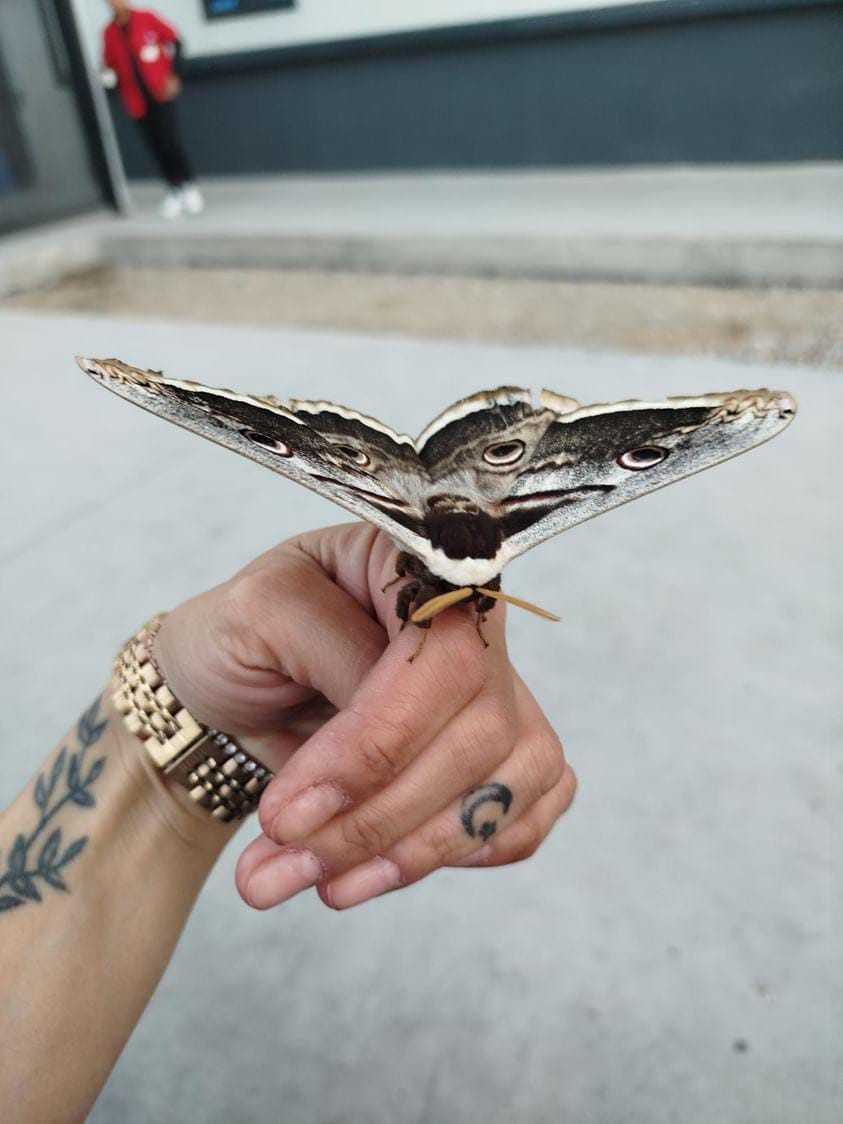 ORGANİZE SANAYİ BÖLGESİ'NDEKİ BİR KABLO FABRİKASINDA 'BÜYÜK TAVUS' CİNSİ KELEBEK, AYŞE BİRAY İSİMLİ KADININ OMUZUNA KONDU. KELEBEK DAHA SONRA SONRA KADININ ELİNİN ÜZERİNE DE GİDEREK KISA BİR SÜRE SONRA UÇUP GİTTİ.