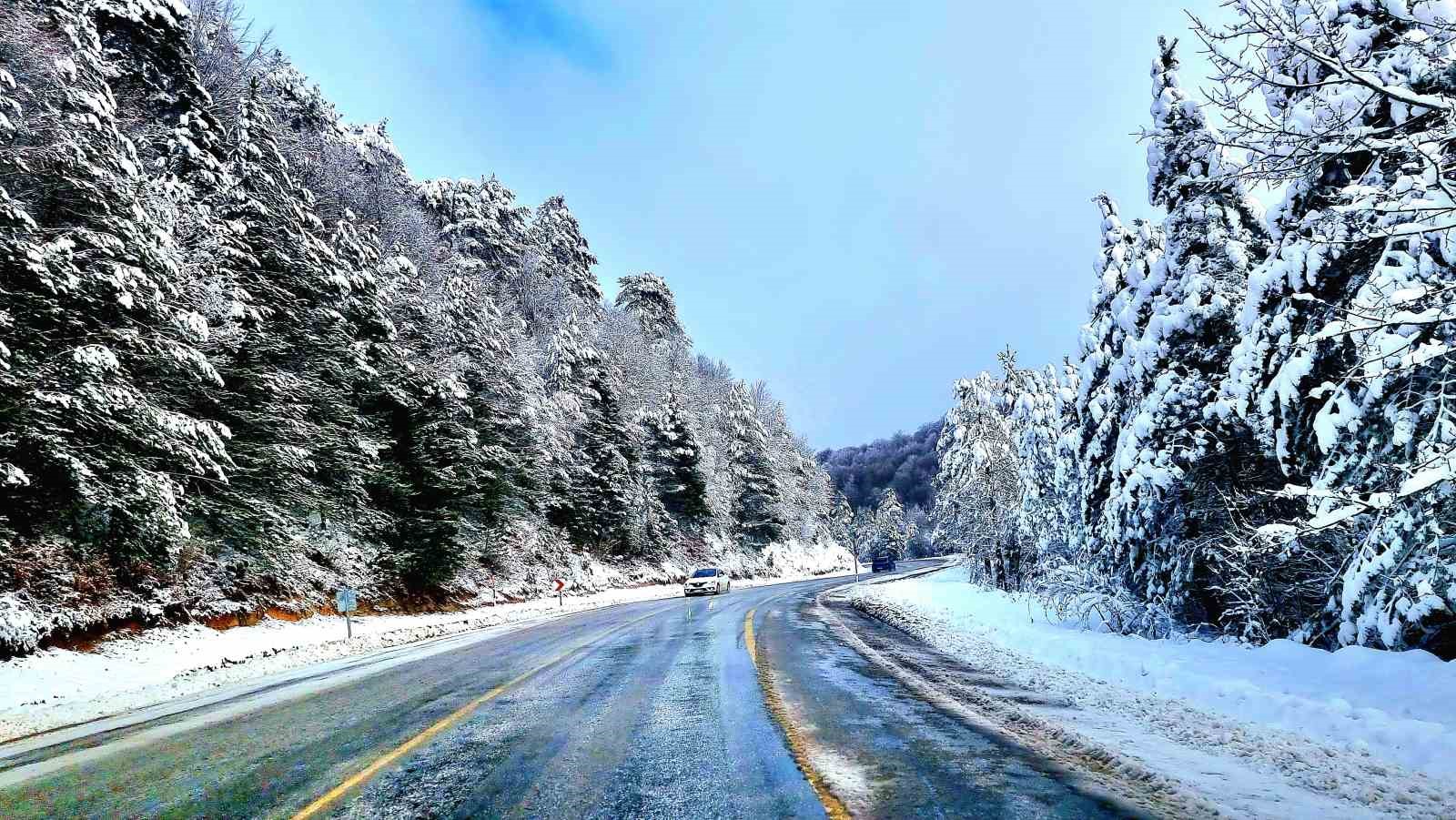 Kütahya-Bursa bağlantı yolunda kar güzelliği