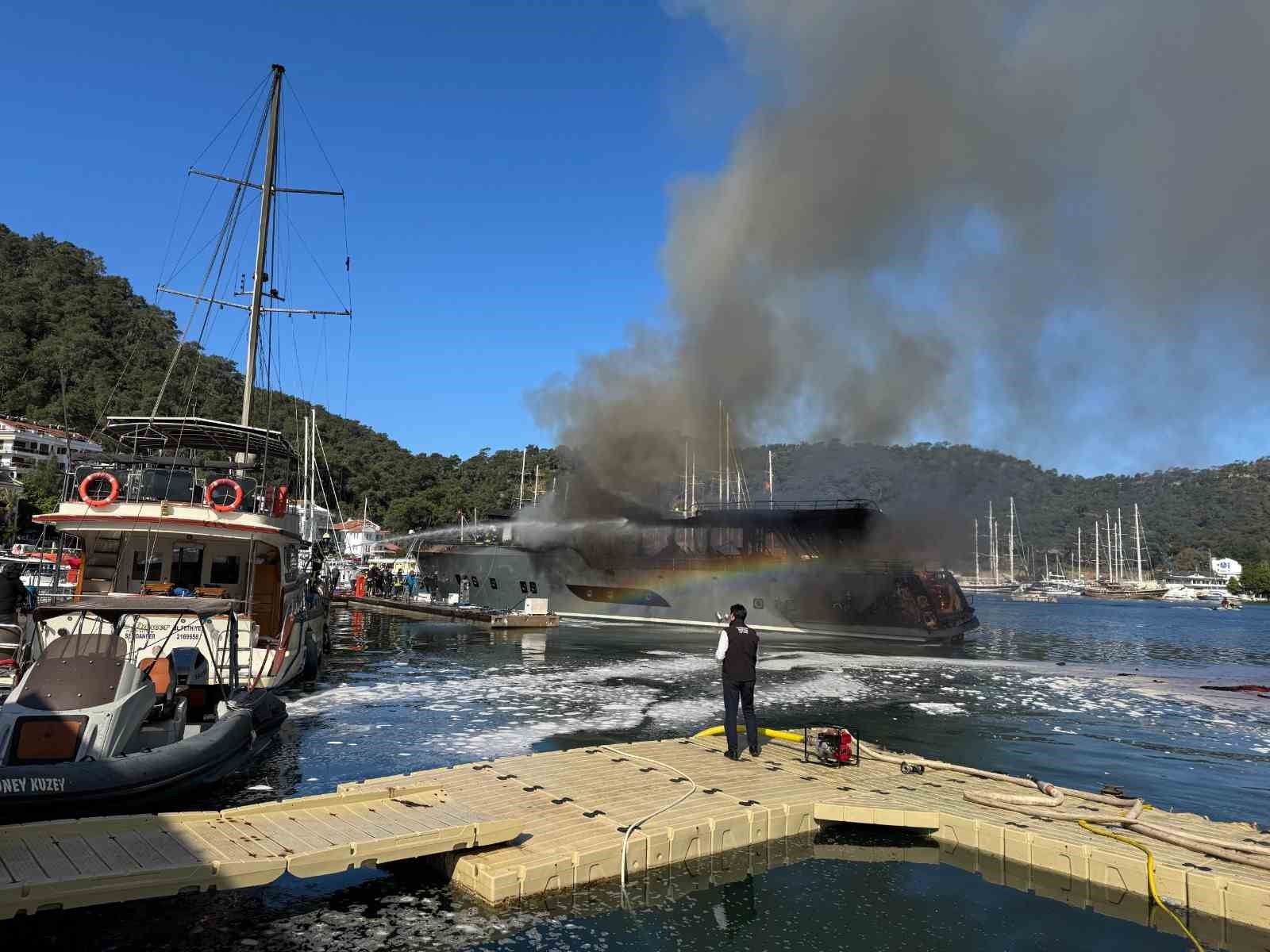 MUĞLA BÜYÜKŞEHİR BELEDİYESİ EKİPLERİ FETHİYE’DE ÖZEL BİR MARİNADA ÇIKAN TEKNE YANGININA 11 İTFAİYE ARACI VE 30 PERSONELLE MÜDAHALE ETTİ.