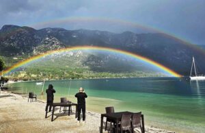 Muğla Akbük Koyu’nda oluşan Gökkuşağı mest etti