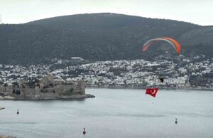 Muğla’nın Bodrum ilçesinde 18 Mart Şehitleri Anma Günü ve Çanakkale Deniz Zaferi’nin yıl dönümünde gökyüzü kırmızı beyaza büründü. Paramotorla yapılan uçuşta açılan dev Türk bayrağı, ilçe semalarında dikkat çekerken sahildeki vatandaşlar ve turistler o anları ilgiyle izledi.Bodrum’da yaşayan yamaç paraşütü…