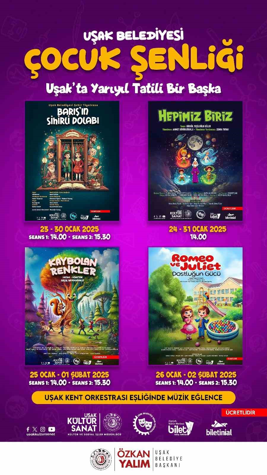UŞAK BELEDİYESİ HER YIL ARA TATİLDE KARNE ALAN ÖĞRENCİLERE YÖNELİK DÜZENLEDİĞİ ÇOCUK ŞENLİKLERİNE BU YIL DA DEVAM EDİYOR.