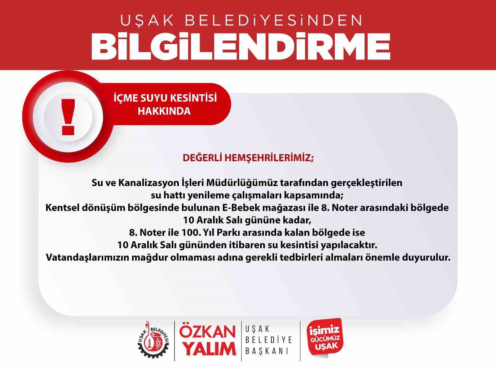 Uşak Belediyesi’nce su kesintisi için vatandaşları uyardı