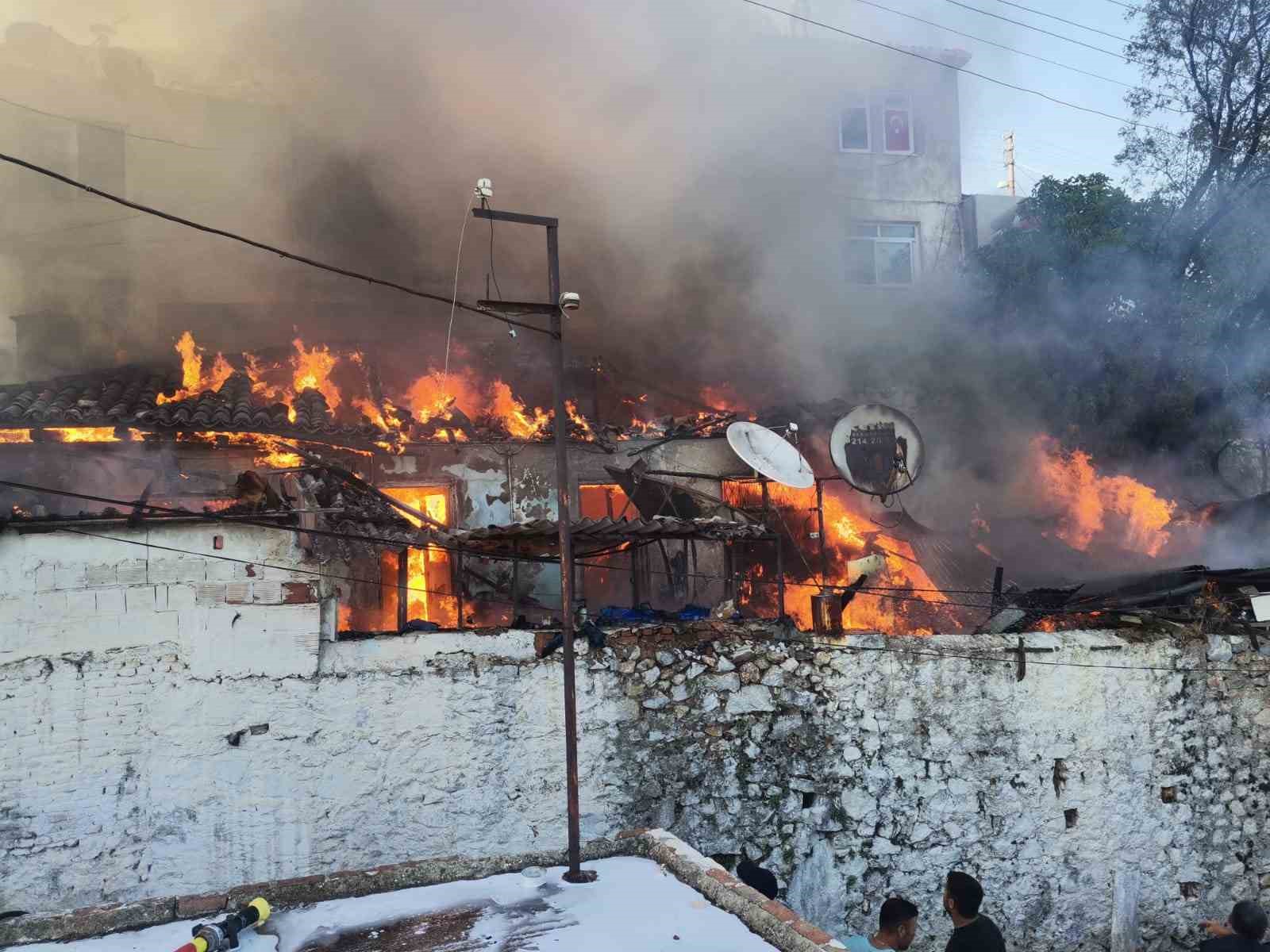 MUĞLA’NIN MENTEŞE İLÇESİ KARAMEHMET MAHALLESİNDE SAAT 19.00 SIRALARINDA AHŞAP ÇATILI EVDE BAŞLAYAN YANGINA İTFAİYE EKİPLERİ MÜDAHALE EDİYOR.