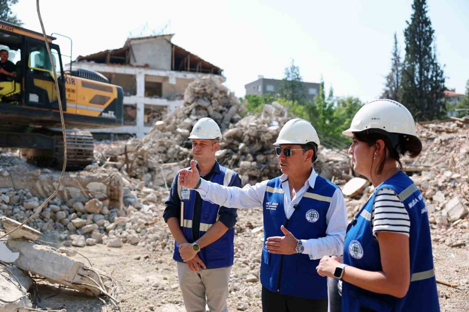 KIYI EGE BELEDİYELER BİRLİĞİ VE MUĞLA BÜYÜKŞEHİR BELEDİYE BAŞKANI AHMET ARAS, YIKIMI DEVAM EDEN VE YERİNE YENİSİ YAPILACAK OLAN ABİDE H. NURİ ÖNCÜER HUZUREVİ, YAŞLI BAKIM VE REHABİLİTASYON MERKEZİ İLE AİLE HEKİMLİĞİ BİNASININ BULUNDUĞU ALANDA İNCELEMELERDE BULUNDU.