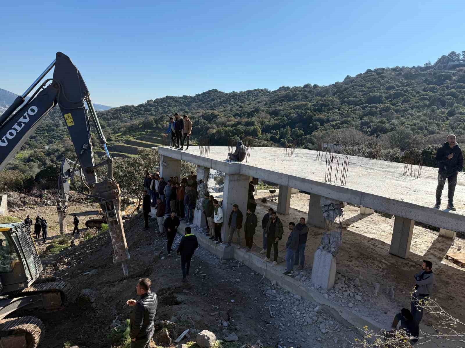 MUĞLA’NIN BODRUM İLÇESİNDE KAÇAK YAPILARIN YIKIMI SIRASINDA GERGİNLİK YAŞANDI.