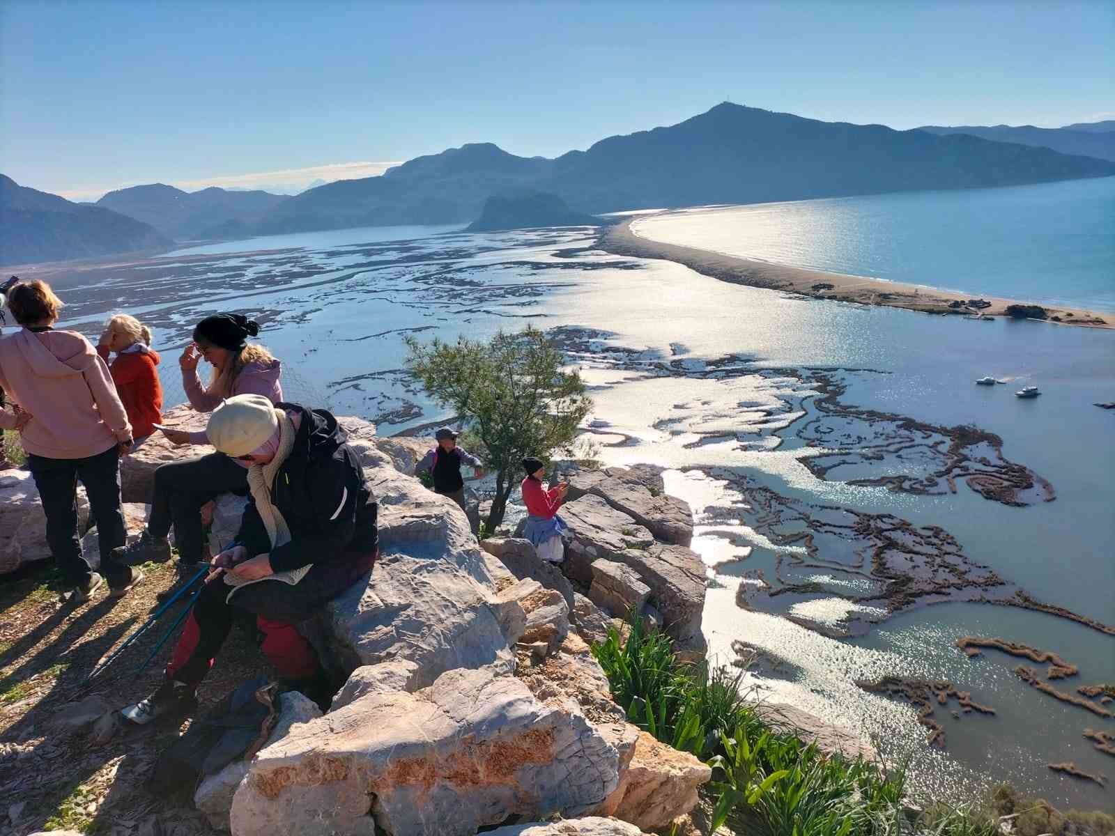 Köyceğiz Yürüyüş Grubu Rehberi Kudret Önal seyir terasından manzarayı izlemenin çok keyifli olduğunu ifade ederek, “Burası Çandır. Çandırdan İztuzu’na seyir tepesi. Arkada gördüğünüz yer Dalyan Lagünü. İztuzu Plajı, yanı da Akdeniz” diyerek doğaseverleri Çandır’a davet etti.