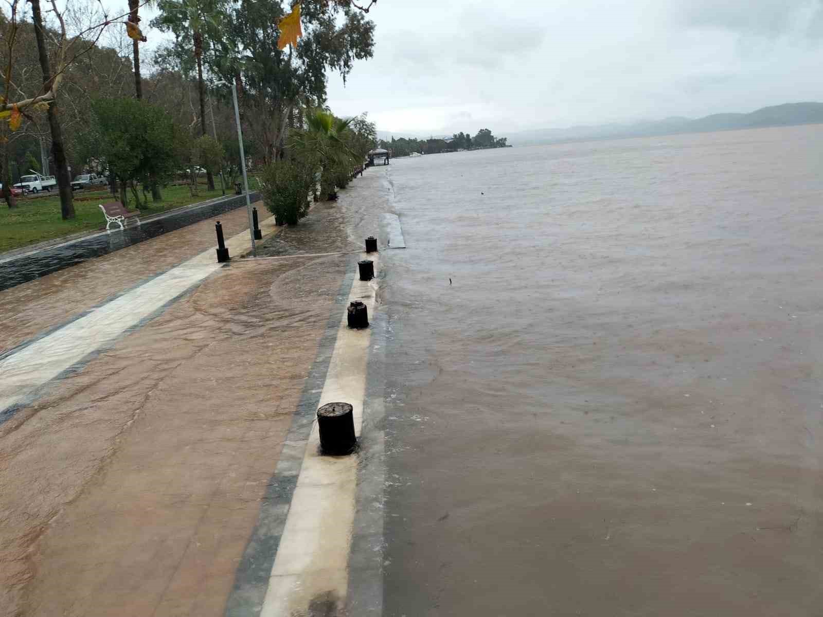 Köyceğiz Gölü taştı, yürüyüş yolunu su bastı