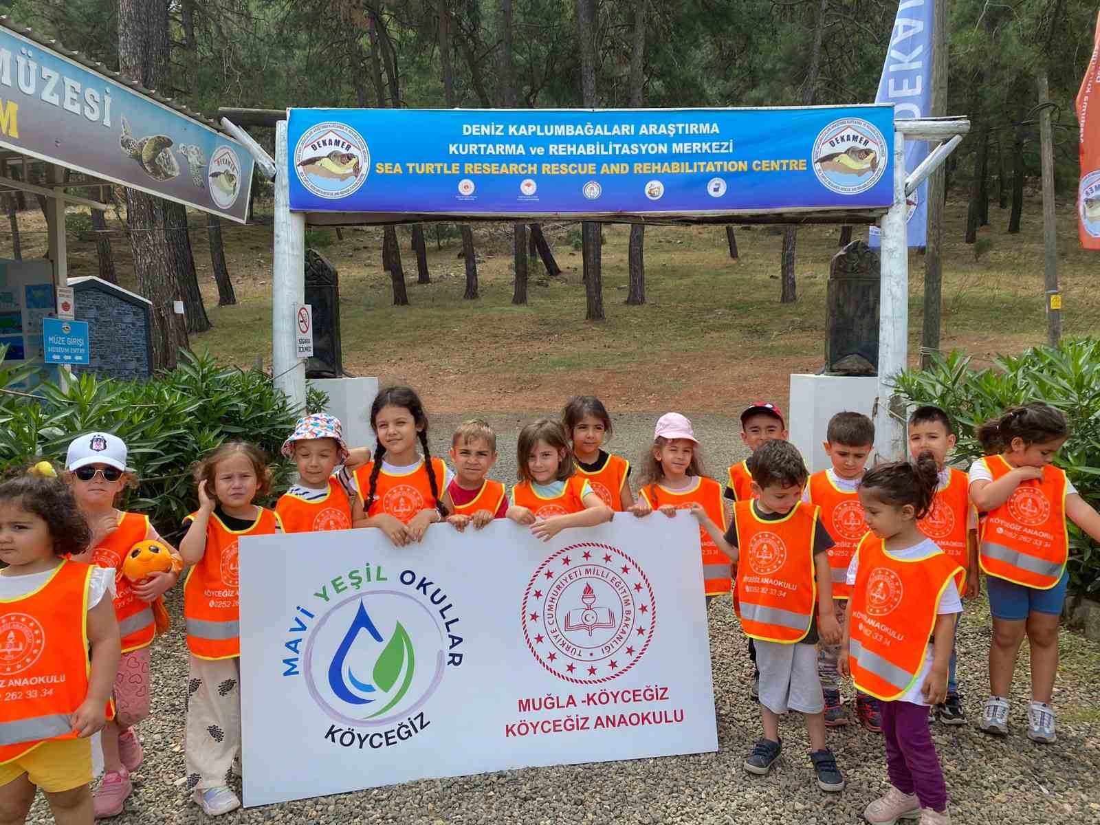 Muğla’nın Köyceğiz ilçesinde Anaokulu öğrencilerine deniz kaplumbağaları (Caretta caretta) tanıtıldı.