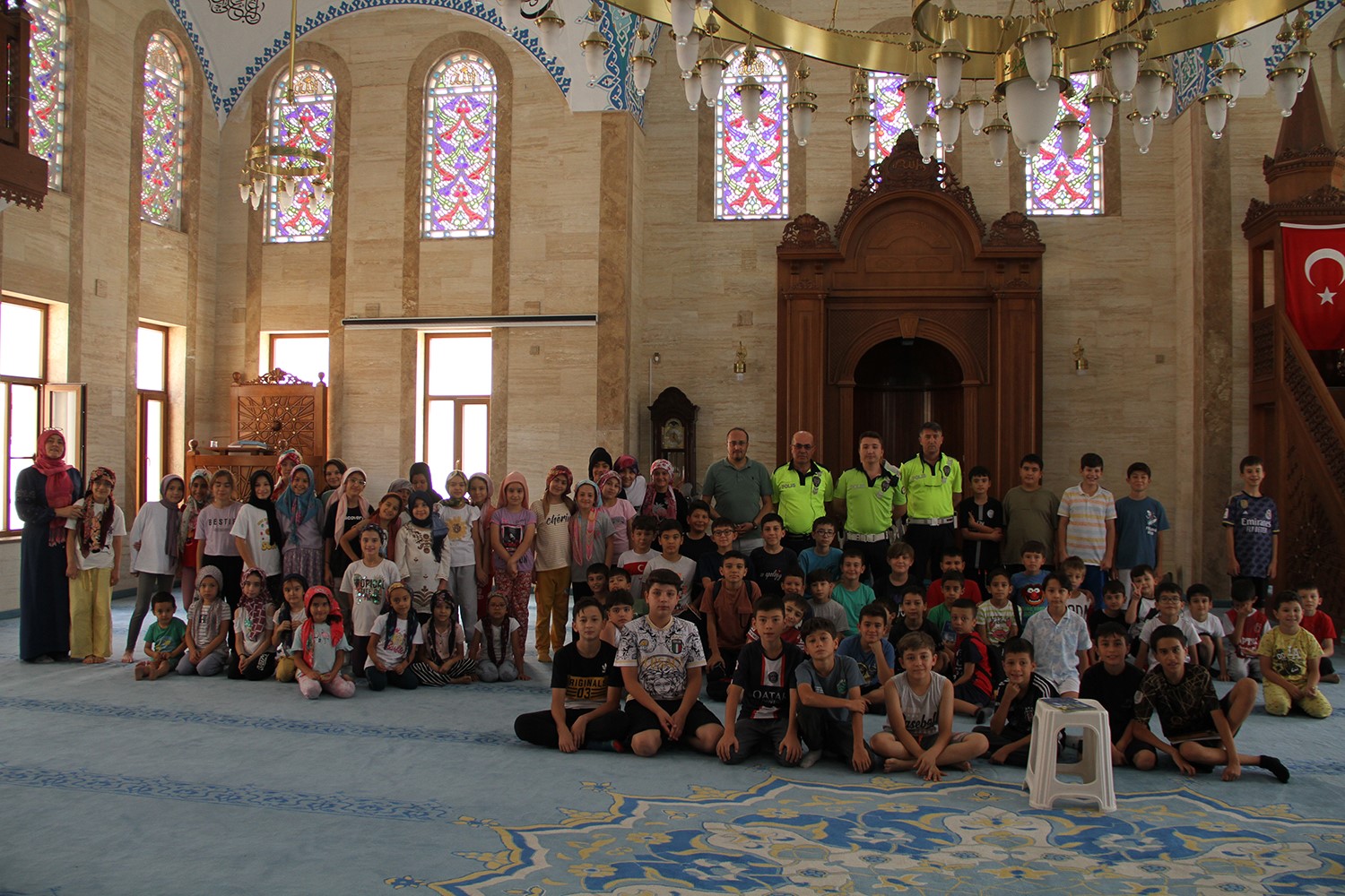 Manisa’nın Kula ilçesinde okulların kapanması ile beraber başlayan yaz Kur’an kurslarına giden çocuklara Kula İlçe Emniyet Trafik Büro Amirliğine bağlı polis memurları tarafından camilerde trafik eğitimi de veriliyor.