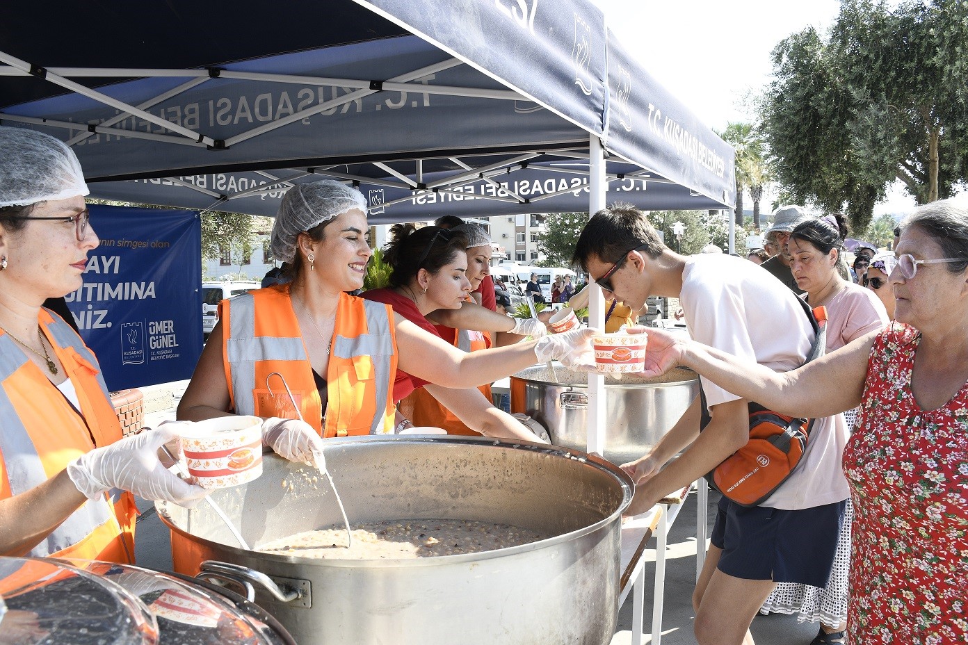 Kuşadası Belediyesi bu yıl Muharrem ayında aşurenin bereketini 8 bin kişiyle paylaştı. Sosyal Yardım İşleri Müdürlüğü ekipleri tarafından İsmail Cem Dostluk ve Barış Meydanı, İkioluklu Mevkii, İkiçeşmelik, Karaova, Davutlar ve Güzelçamlı mahallelerinde kurulan çadırlarda vatandaşlara aşure ikramında bulunuldu.