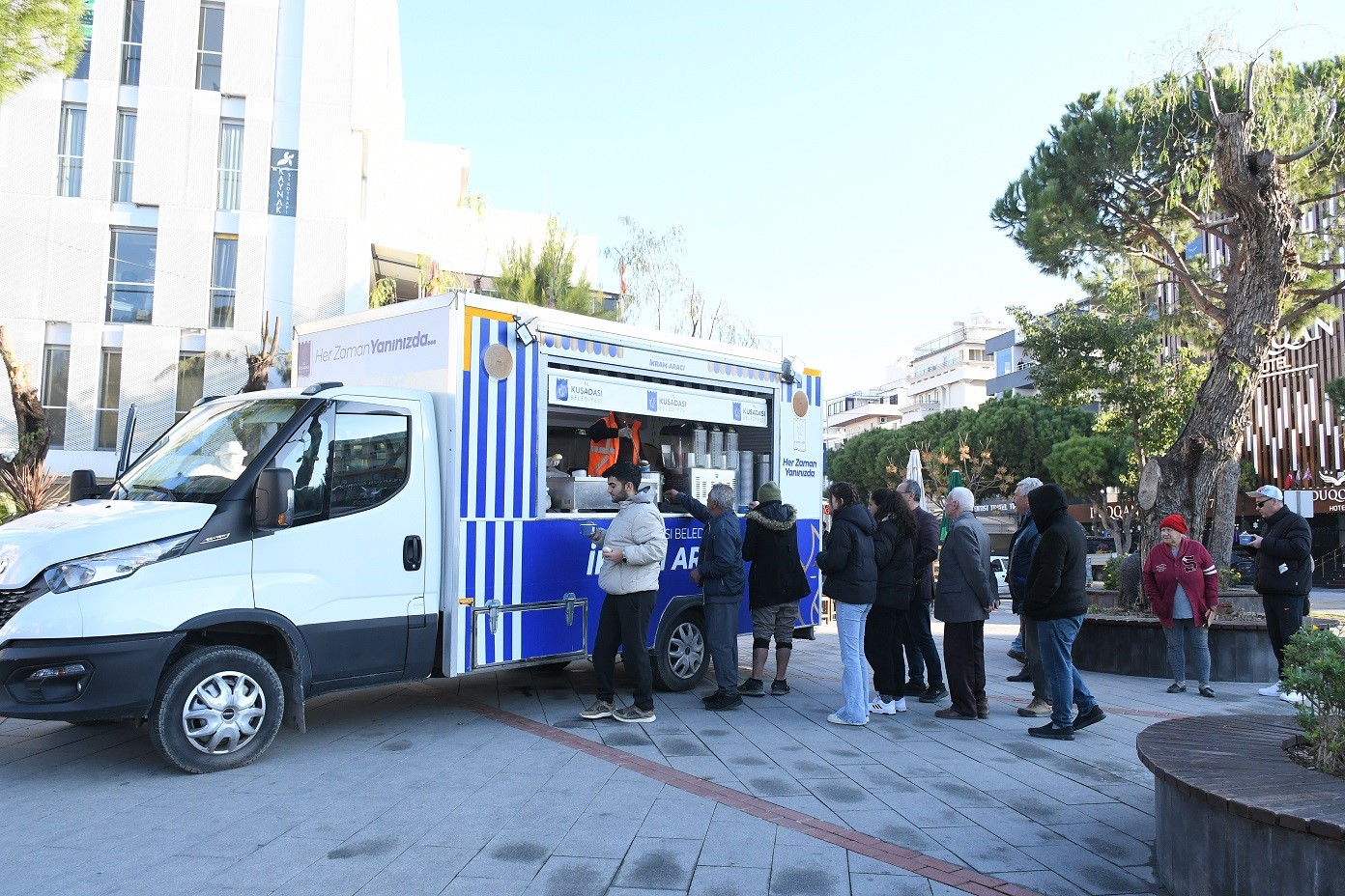 Kuşadası Belediyesi sabah saatlerinde işlerine ve okullarına giden Kuşadalılara sıcak çorba ikramına başladı.