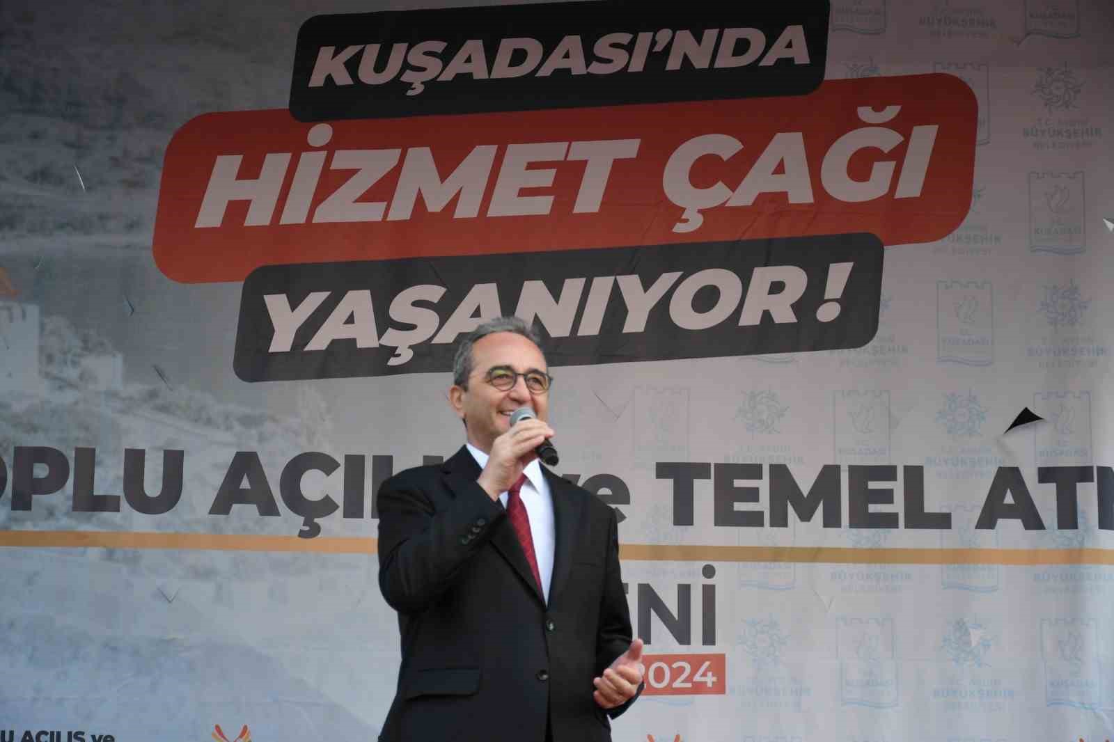 Törenle, Ege Denizi’nde 30 Ekim 2021 tarihinde meydana gelen depremde hasar görmesi nedeniyle yıkılan eski belediye hizmet binasının bulunduğu alanda yapılacak olan Kuşadası’nın ilk kent meydanı Lütfi Suyolcu Kent Meydanı ve Yaşam Merkezi ile toprak saha olarak bilinen alanda inşa edilecek olan Kuşadası Yaşam Kültür ve Spor Merkezi’nin de temelleri atıldı. Tören kapsamında yapımları kısa süre içerisinde tamamlanacak olan Kreş, Çocuk Evi ve Kadın Dayanışma Merkezi, Nazik Bekmezci Otizm ve Eğitim Merkezi ile Kampinova projelerinin ve yapımları tamamlanan Adalızade Mezarlığı ile Osmanlı Mezar Taşı Açık Hava Müzesi ile toplam 32 bin 670 metrekarelik 9 yeni park alanı ise kullanıma açıldı.