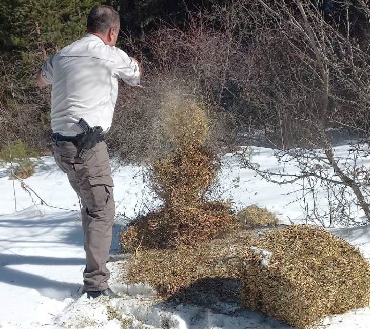 Kütahya Doğa Koruma ve Milli Parklar (DKMP) Şube Müdürlüğü ekiplerince ağır kış şartları nedeniyle yem bulmakta zorlanan yaban hayvanları için yemleme çalışması yapıldığı bildirildi.