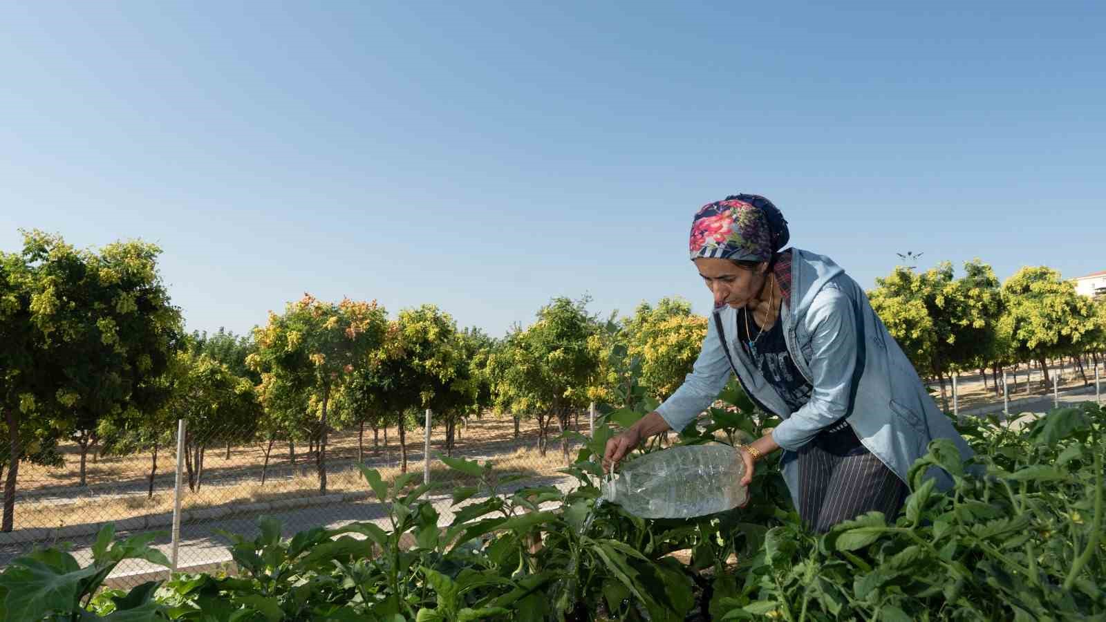 Mercek Projesi’nde sosyolog olarak görev yapan Elif Gökçen, “İzmir Büyükşehir Belediyesi Kadın Çalışmaları Şube Müdürlüğü’ne bağlı Mercek Projesi kapsamında kurulan mahalle bostanında hasadımız yapılıyor. Bostanımız Kadifekale’de 6 dönüm olmak üzere üç etaptan oluşuyor. Toplam 137 kadın, bostanımızda ürün yetiştiriyor” bilgisini verdi.