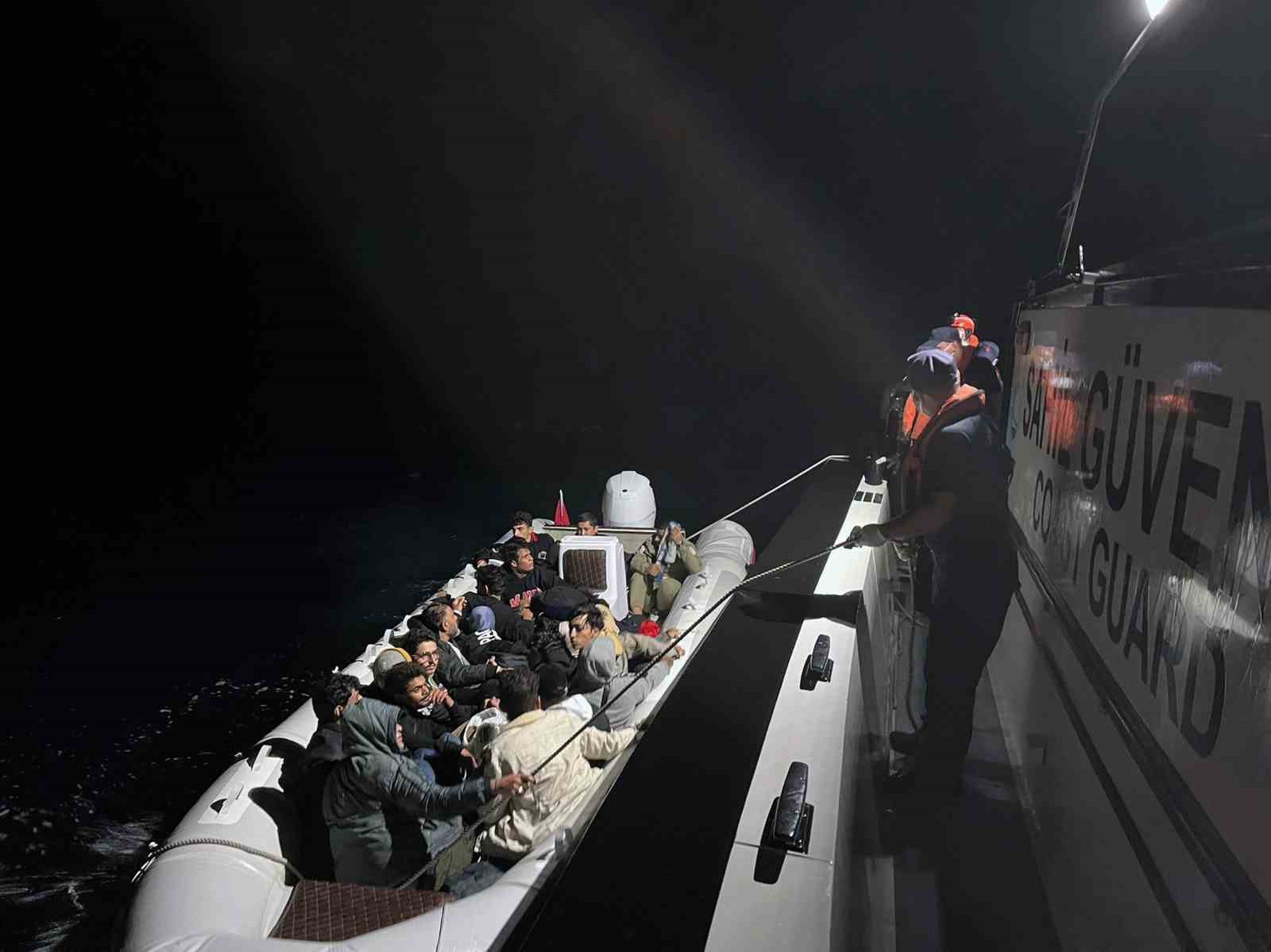 Muğla’nın Marmaris ilçesi açıklarında Sahil Güvenlik ekipleri tarafından tespit edilen fiber karinalı lastik bot içinde 13 düzensiz göçmen yakalandı.