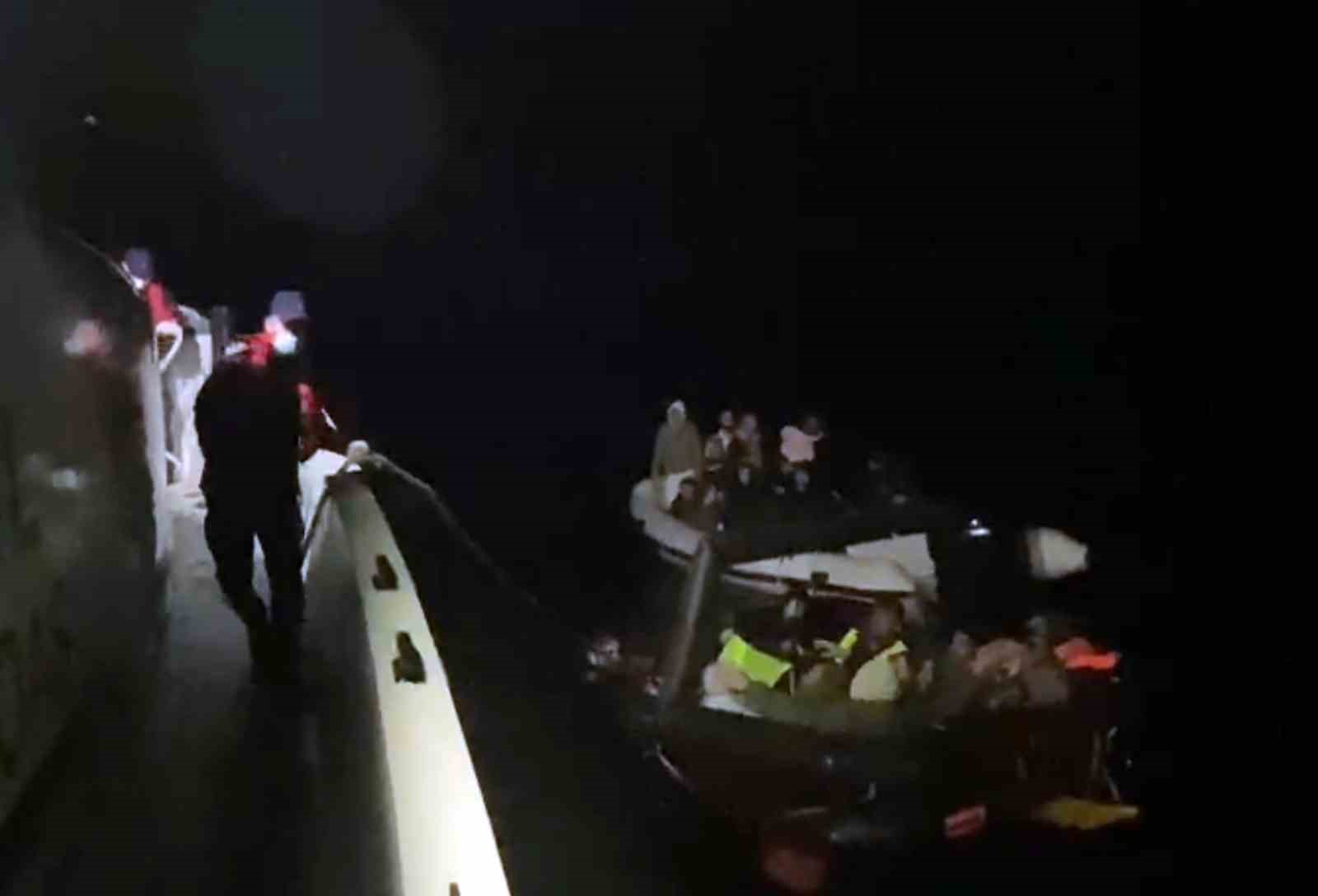 Marmaris ilçesi açıklarında lastik bot içerisinde çok sayıda düzensiz göçmen olduğu bilgisinin alınması üzerine bölgeye Türk Sahil Güvenlik Botu sevk edildi. Yunanistan sahil güvenlik unsurları tarafından Türk karasularına geri itilen ve açık denizde sürüklenen lastik bot içindeki 7’si çocuk 26 düzensiz göçmen kurtarıldı.