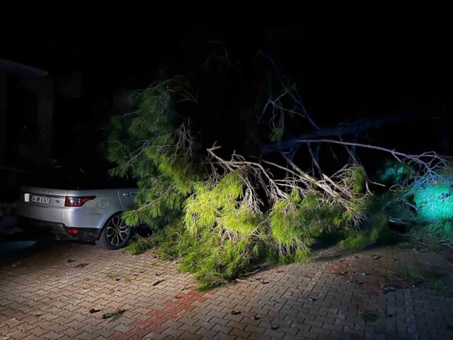 Muğla’nın Marmaris ilçesinde etkili olan şiddetli fırtına hayatı olumsuz etkiledi. Kırsal mahallelerde çok sayıda ağaç devrilirken, Hisarönü Mahallesi’ndeki mesire alanında bir kişinin üzerine ağaç düşmesi sonucu yaralandı.