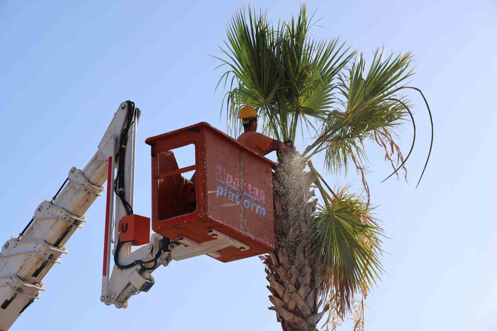 Marmaris genelindeki palmiye ağaçlarının dönemsel budamaları başladı. Belediye yetkilileri ana caddelerin ardından iç bölgelerdeki palmiyelerin de bakımdan geçirileceğini belirtti.