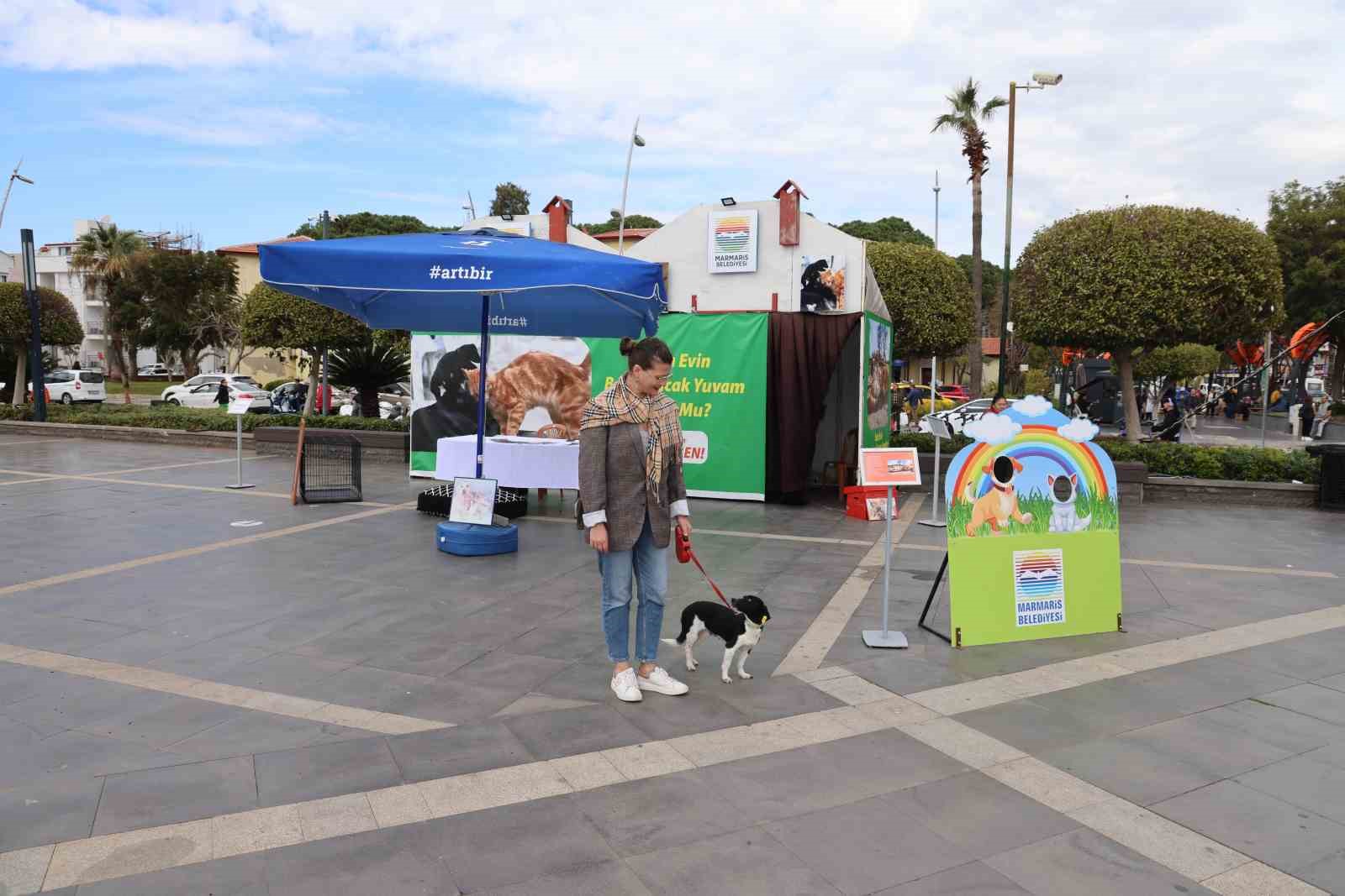 Marmaris Belediye Başkanı Mehmet Oktay’ın göreve geldiği ilk aylarda yenilenen Marmaris Belediyesi Geçici Hayvan Bakımevi, patili dostlar için sıcak bir yuva olmaya devam ediyor. 5 yıl içinde yaklaşık 39 bin cana dokunan Bakımevi’nde tedavi, kısırlaştırma ve sahiplendirme çalışmaları aralıksız sürüyor. Bakımevi ekipleri şimdi de sahiplendirme bilincinin artması için yeni bir çalışmaya imza atıyor. 19 Mayıs Gençlik Meydanı’nda ‘satın alma sahiplen’ sloganıyla kurulan stantta bakımevi personeli hem bilgilendirme yapıyor hem de geçici bakımevinde bulunan köpekleri tanıtıyor.