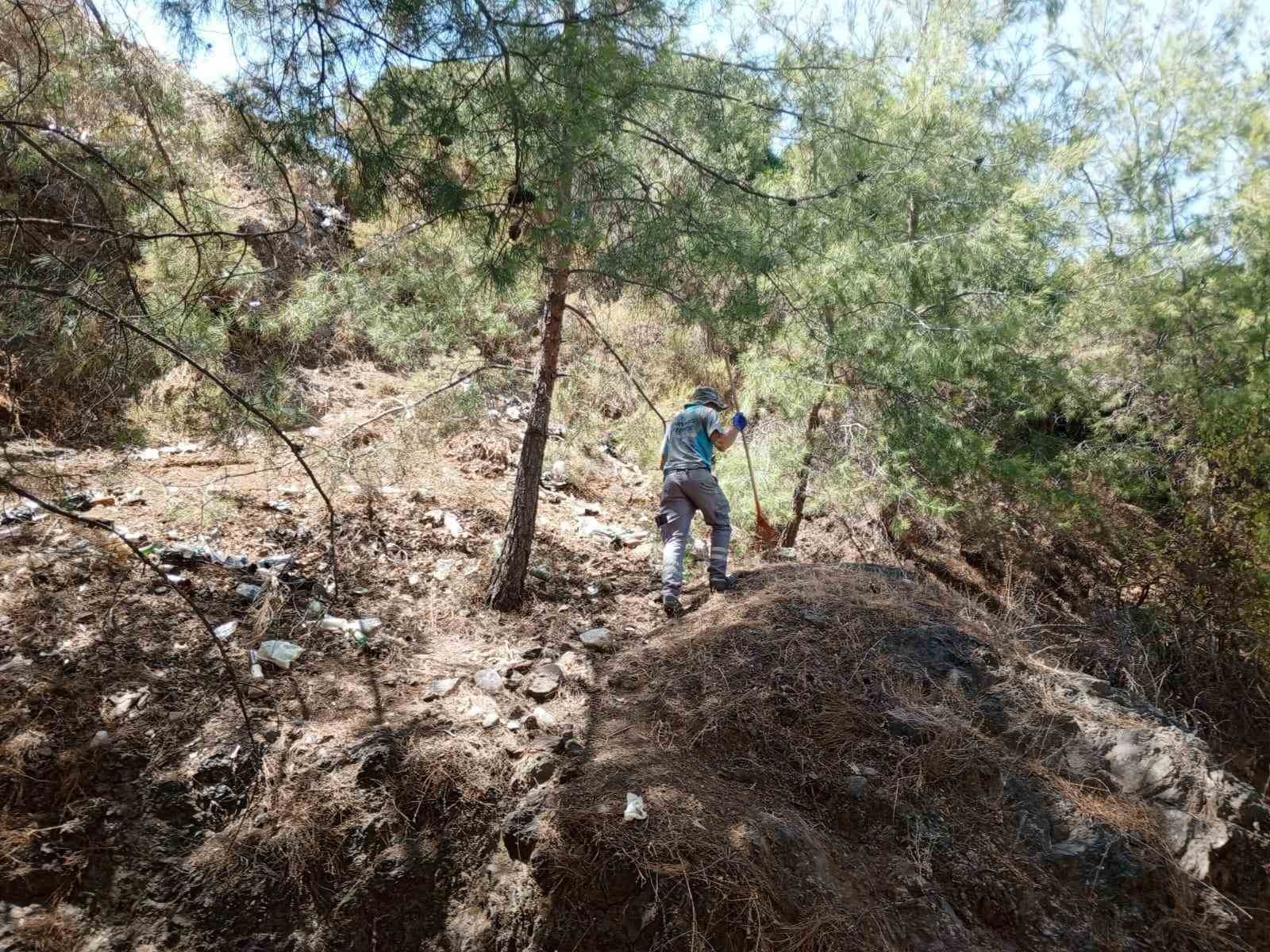 Çok sayıda kişinin Marmaris manzarasını izlemek için gittiği Armutalan Seyir Tepesi, Temizlik İşleri Müdürlüğü’nce temizlendi.