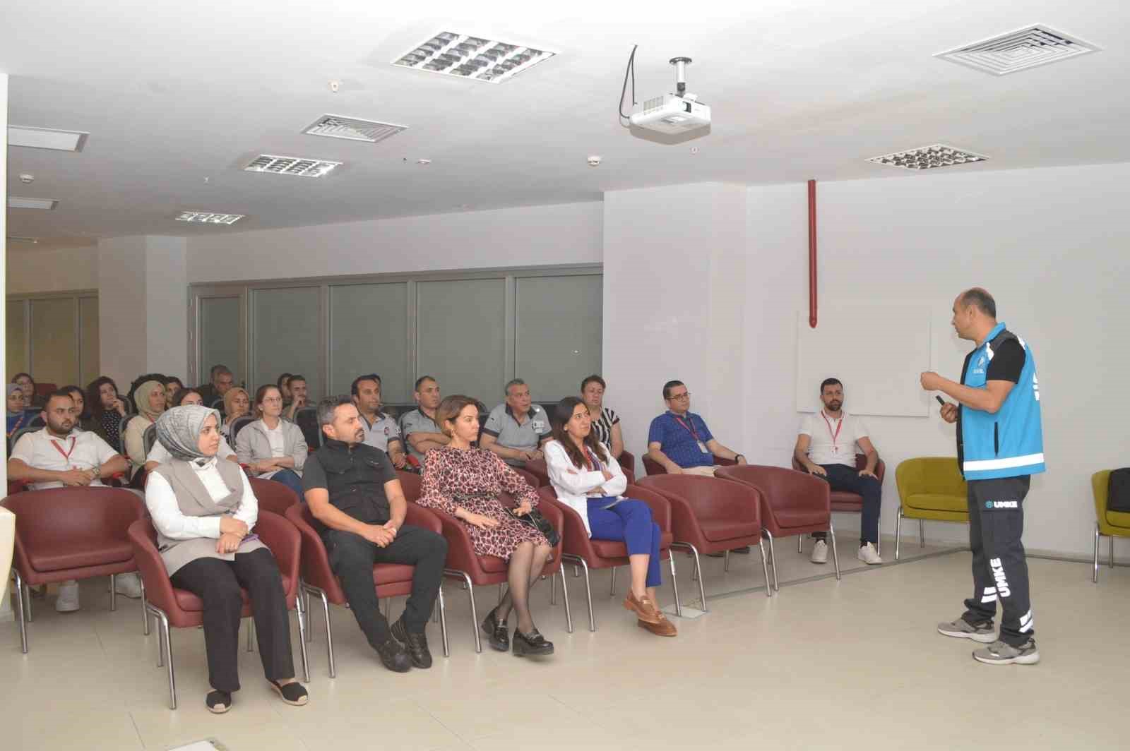 Muğla İl Sağlık Müdürlüğü İl Sağlık Afet Koordinasyon Merkezi (İL SAKOM) Birimi, tarafından Muğla Eğitim ve Araştırma Hastanesi’nde (MEAH) ’Afet Bilinci Eğitimi’ düzenlendi.