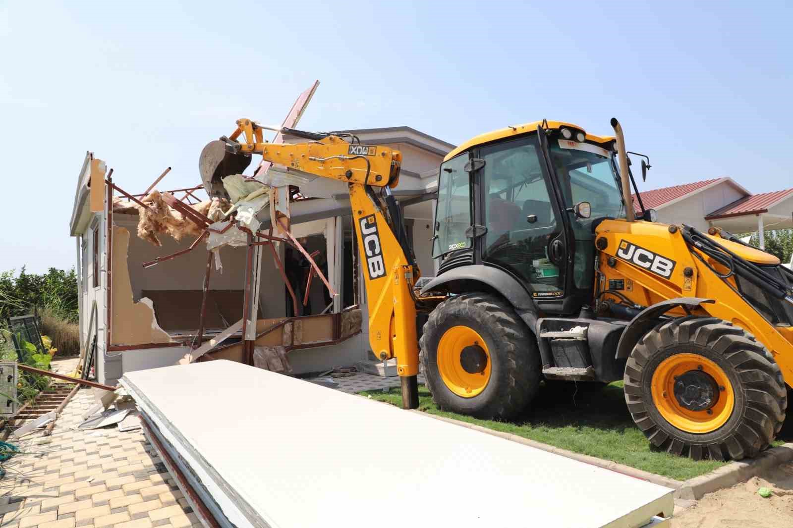 Menderes Belediyesi tarafından ruhsatsız ve izinsiz olarak yasalara aykırı olarak inşa edildiği belirlenen, mühürlenmiş, adli süreci tamamlanmış, yıkım kararı alınan hobi bahçelerinin yıkımına başlandı.