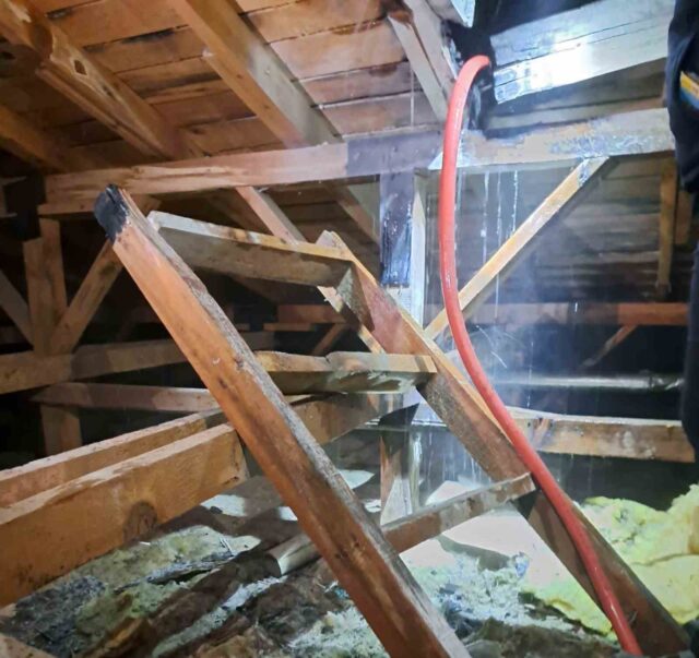 Muğla’nın Menteşe ilçesi eski TOKİ konutlarının bulunduğu D69 blokta çıkan çatı yangını kısa süreli paniğe neden oldu. Alevleri fark eden bina sakinleri durumu hemen 112 Acil Çağrı Merkezi’ne bildirdi. İhbar üzerine bölgeye itfaiye ve polis ekipleri sevk edildi.