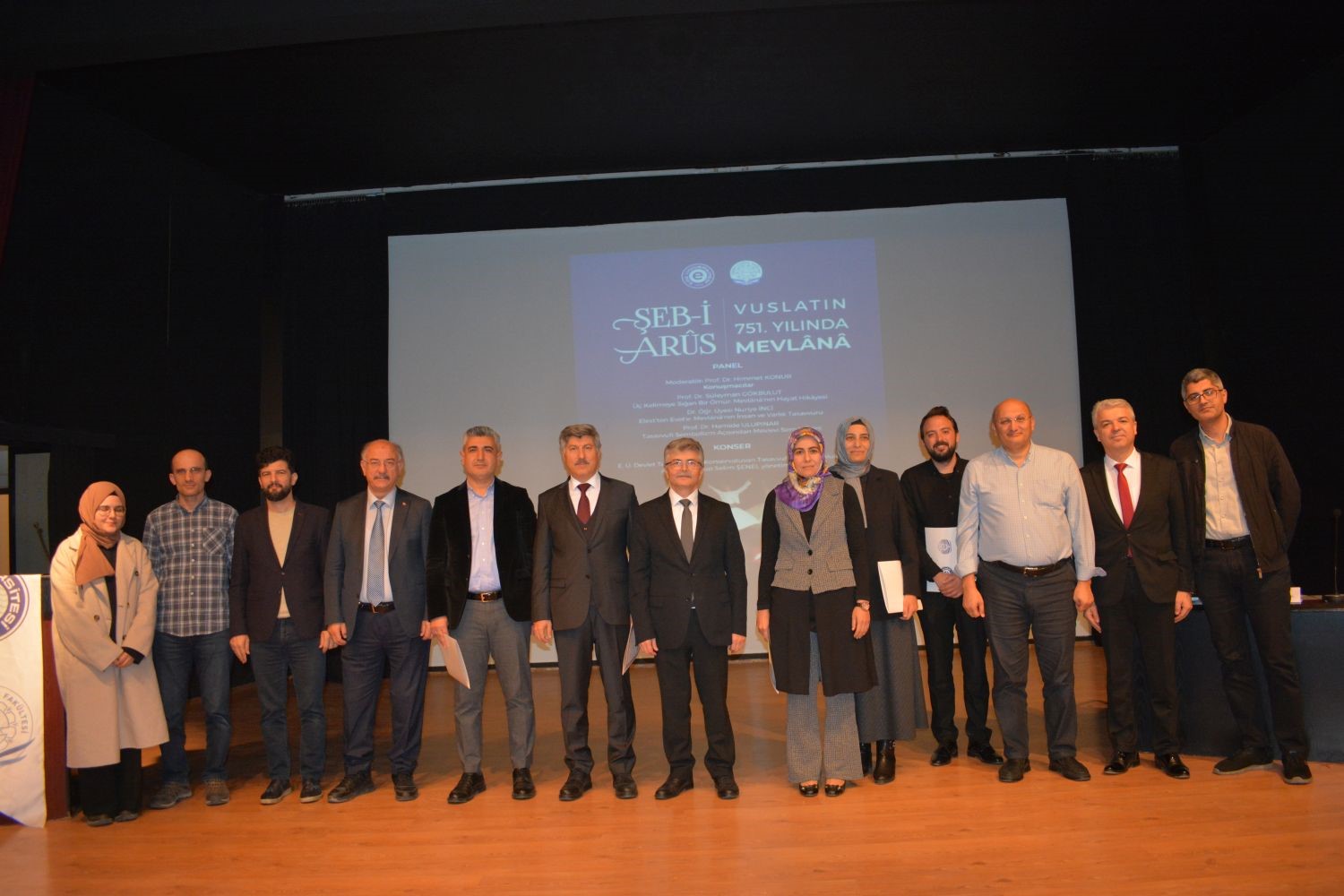Ege Üniversitesi (EÜ) Birgivi İlahiyat Fakültesi tarafından Mevlana Celaleddin-i Rumi’nin 751’inci vuslat yıl dönümü dolayısıyla EÜ Kültür Sanat Evi’nde “Şeb-i Arus-Vuslatın 751. Yılında Mevlana” başlıklı panel gerçekleştirildi. Etkinliğe; EÜ Rektör Yardımcısı Prof. Dr. Mehmet Ersan, EÜ İlahiyat Fakültesi Dekanı Prof. Dr. Muhammet Hanefi Palabıyık, akademisyenler ve öğrenciler katıldı.