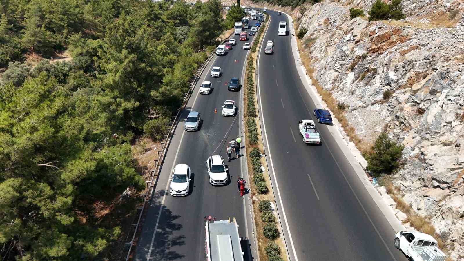 Kaza, Milas-Bodrum karayolu Karakaya Mevkii’nde kent merkezine seyir halinde olan TIR’ın, aynı yönde ilerleyen bir otomobile çarpması sonucu gerçekleşti. Kazada otomobilde bulunan 4 kişi yaralandı. 112 Acil Çağrı Merkezine bilgi verilme i üzerine olay yerine Muğla Büyükşehir Belediyesi itfaiye, sağlık ve trafik ekipleri sevk edildi.