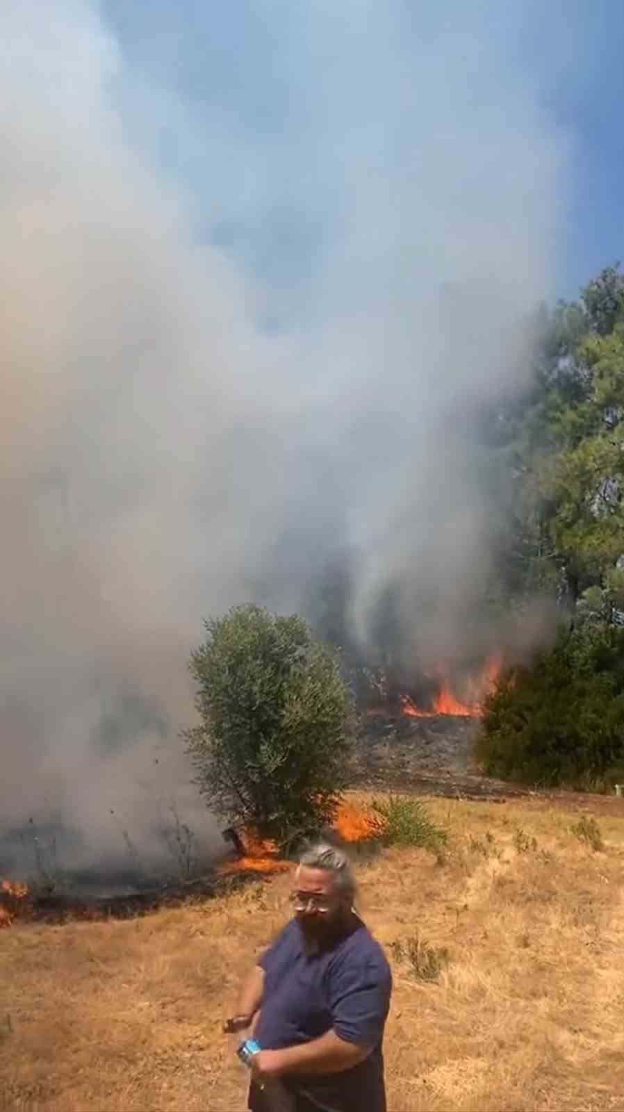 Milas Ören Alatepe Mahallesindeki bir bahçede kuru otların tutuşması ile başladığı öğrenilen yangın sonrası önce vatandaşlar tarafından müdahale edilen yangına Orman Bölge Müdürlüğü arazöz ekipleri ile havadan8 helikopter ile Muğla Büyükşehir Belediyesi Milas İtfaiye ekipleri müdahale ediyor.